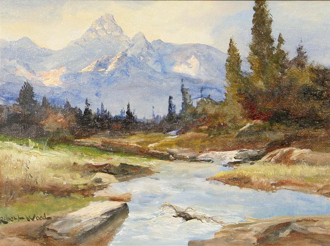Robert Wood (1889-1979). Grand Teton. 12" x 16" oil on canvas. Signed lower right. (est $3,500-4,500). For condition reports please visit: www.auctioninsantafe.com/cr2011.pdf