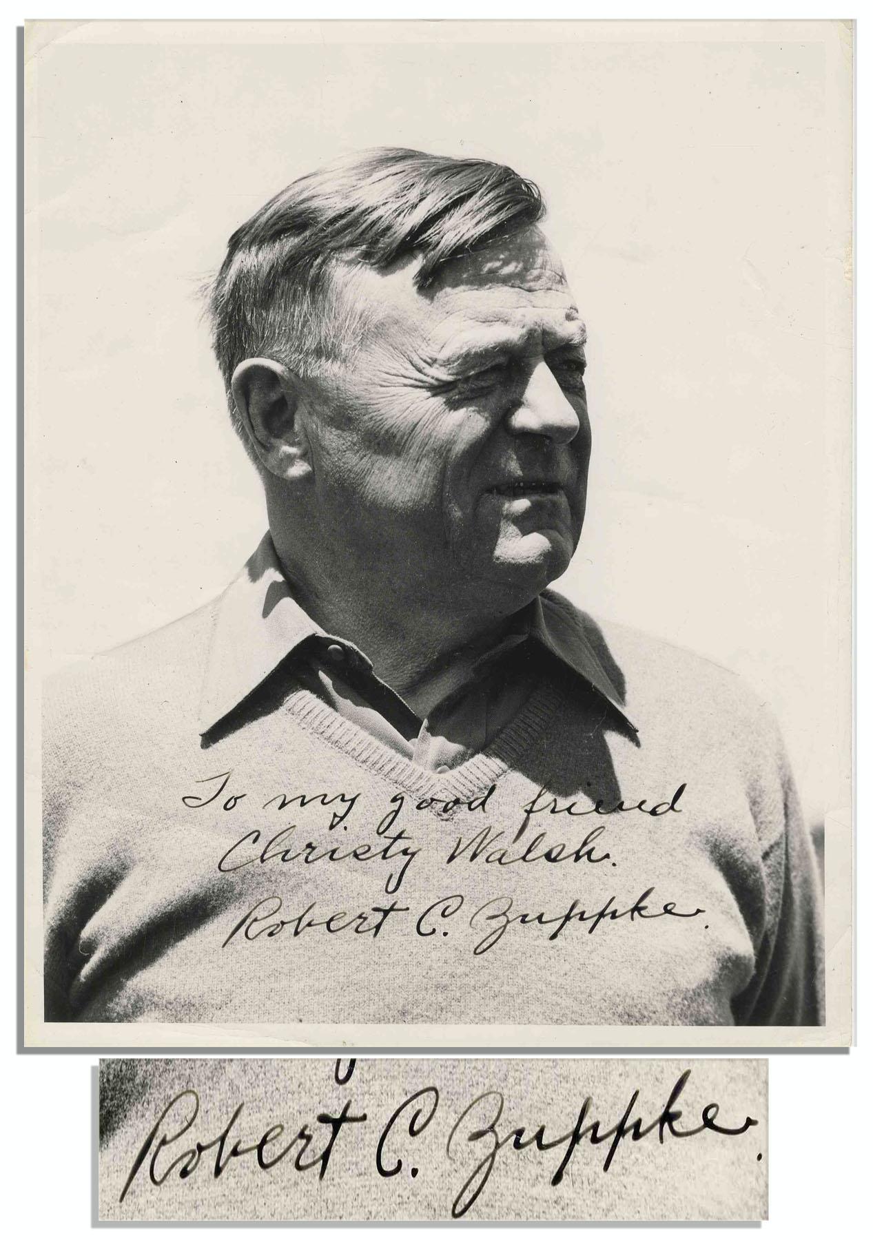 College Hall of Famer Robert Zuppke 8'' x 10'' Signed Photo, ''To my good friend Christy Walsh / Robert C. Zuppke'' -- Near Fine