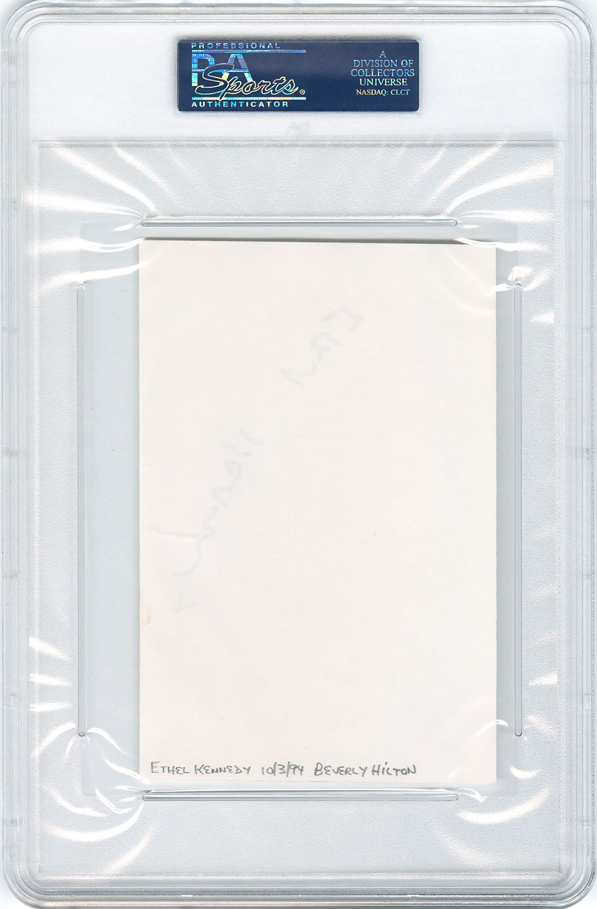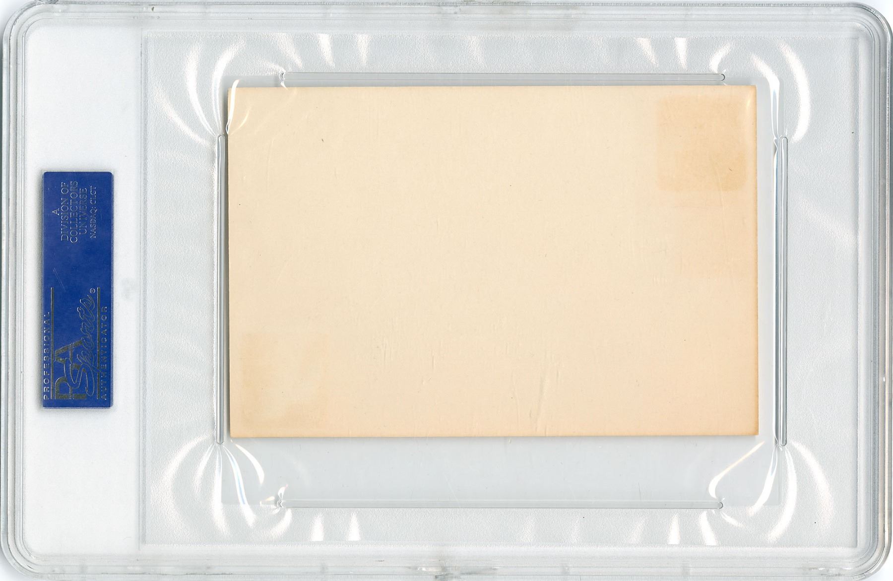All lots sold by RR Auction are accompanied by an Auction Certificate (“AC”). On any lot presented with an AC issued by RR Auction, the certification is only as to its attribution to the person or entity described or to the lot’s usage and only as explicitly stated therein (the “Certification of Authenticity”), to the exclusion of any other warranties, express or implied, including but not limited to those pursuant to the Uniform Commercial Code. The Certification of Authenticity inures only to the original Bidder (as shown in RR Auction’s records). Bidder may not transfer, assign, or otherwise convey the Certification of Authenticity, and such purported transfer, assignment, or conveyance shall be null and void. The Certification of Authenticity is valid from date of the Auction in which Bidder was awarded the lot (the “Auction Date”) until five (5) years after the Auction Date, without exception.