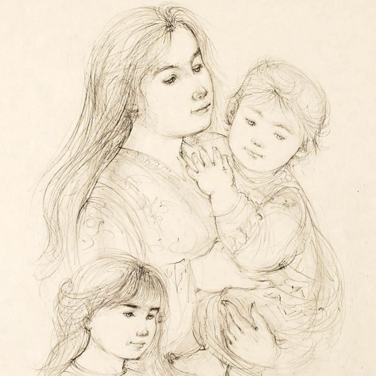 "Robert with Mother and Sister" Limited Edition Lithograph by Edna Hibel (1917-2014), Numbered and H