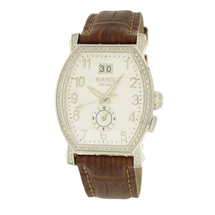 This Roberto Bianci diamond timepiece features: genuine diamonds G-H VS (84pcs individually set), 0.57 cts total weight, Swiss movement with dual time zone (two time zone) and date, sapphire crystal, textured dial, all stainless steel case and genuine alligator strap . Watch is water resistant and includes a three year manufacturer's warranty.