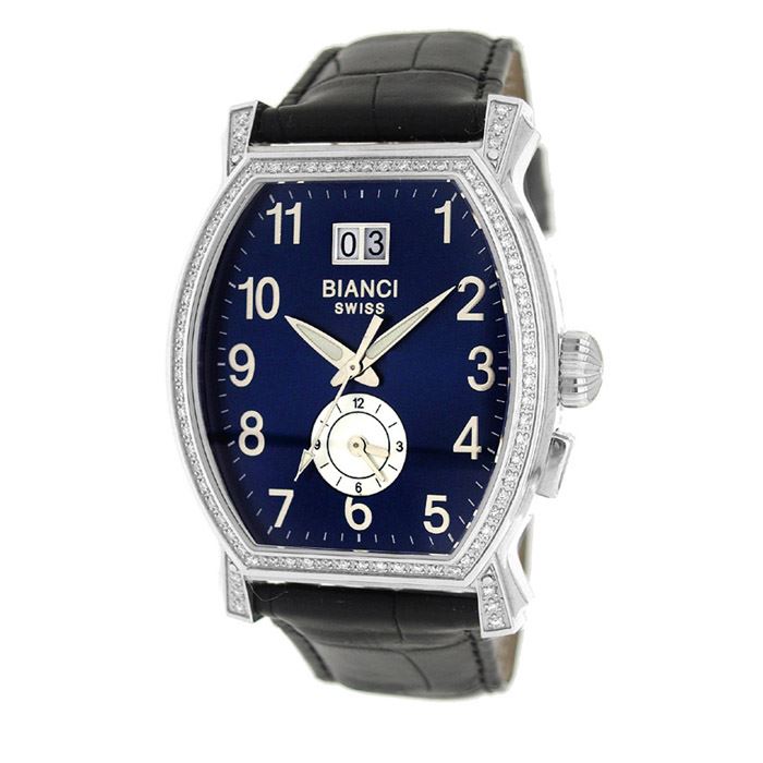 This Roberto Bianci diamond timepiece features: genuine diamonds G-H VS (84pcs individually set), 0.57 cts total weight, Swiss movement with dual time zone (two time zone) and date, sapphire crystal, textured dial, all stainless steel case and genuine alligator strap . Watch is water resistant and includes a three year manufacturer's warranty.