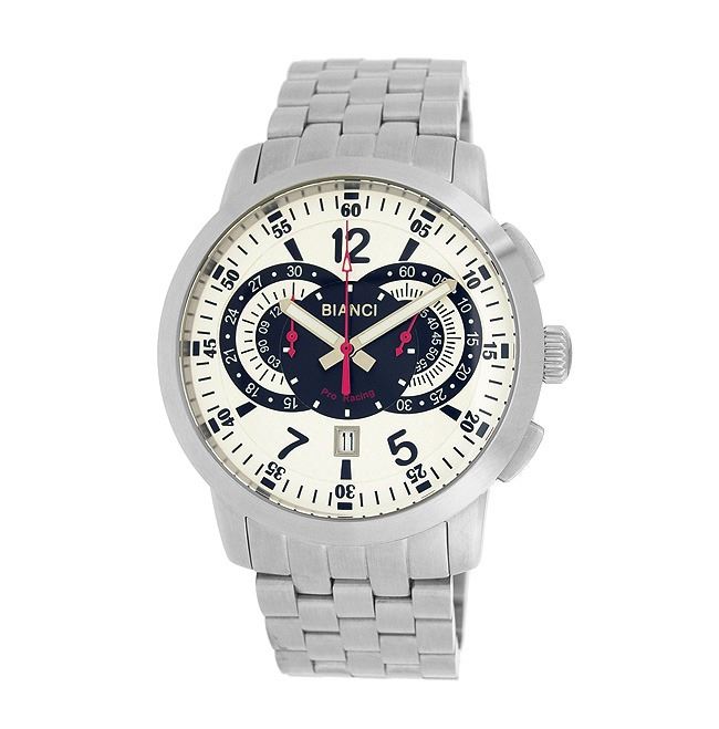 The Bianci Pro Racing collection is HOT!!! In a racing environment where every second and minute counts, this high performance watch will exceed all expectations. The masterfully designed timepiece features an all brushed stainless steel case and band, Swiss chronograph movement with date, sapphire coated antireflective crystal, textured dial with luminous hands and hour markers, fold-over deployment buckle with pushers and security latch, and push/pull crown. This affordable designer watch is 10 ATM water resistant and includes a three year manufacturer's warranty.