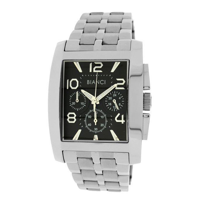 This elegant Roberto Bianci timepiece features a japanese chronograph movement, an all stainless steel case and band with double fold-over deployment buckle, a textured dial with embossed hour markers, and mineral crystal. Watch is water resistant and includes a three year manufacturer's warranty.