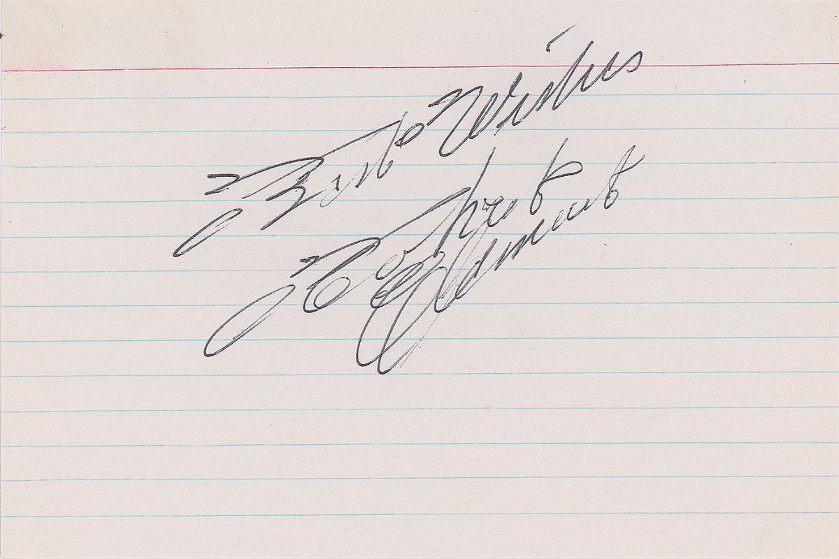 Ballpoint signature, “Best Wishes, Roberto Clemente,” on an off-white 6 x 4 lightly-lined card. In fine condition.