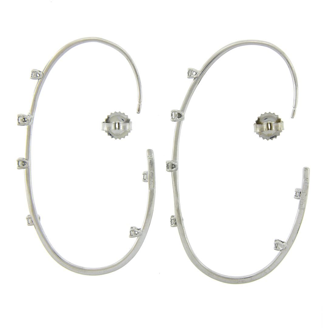 A solid 18k white gold hoop earrings by Roberto Coin, featuring 12 round cut natural diamonds (G/H - VS1/VS2 ; 0.50ctw ), and 2 round cut natrual ruby The earrings measure approximately 58.1x3.1mm and weigh a total of 6.39 grams.