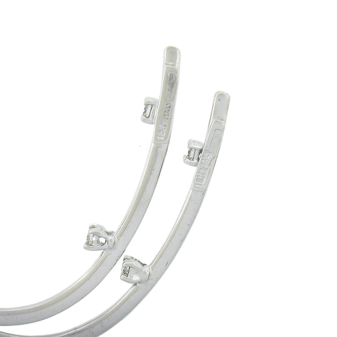 A solid 18k white gold hoop earrings by Roberto Coin, featuring 12 round cut natural diamonds (G/H - VS1/VS2 ; 0.50ctw ), and 2 round cut natrual ruby The earrings measure approximately 58.1x3.1mm and weigh a total of 6.39 grams.