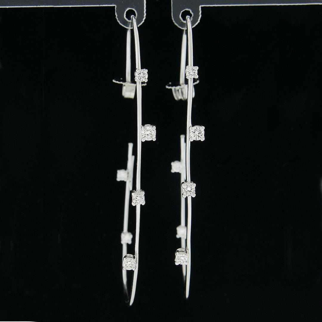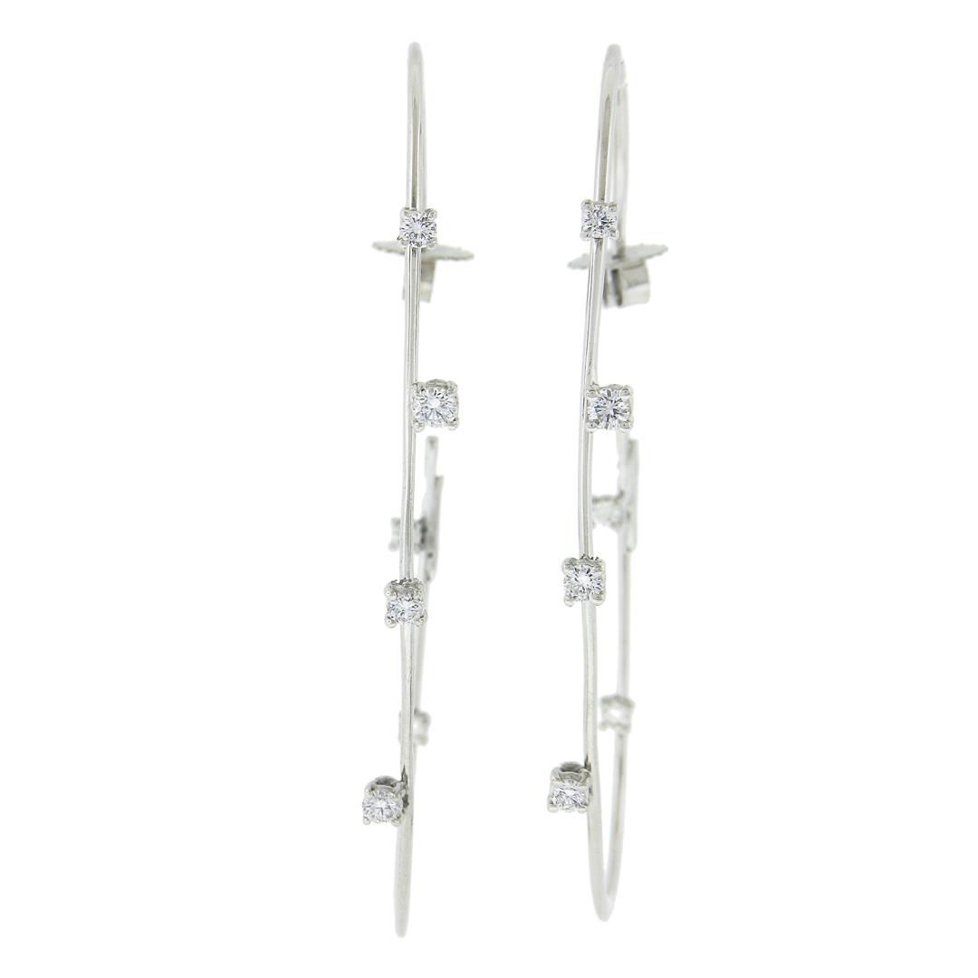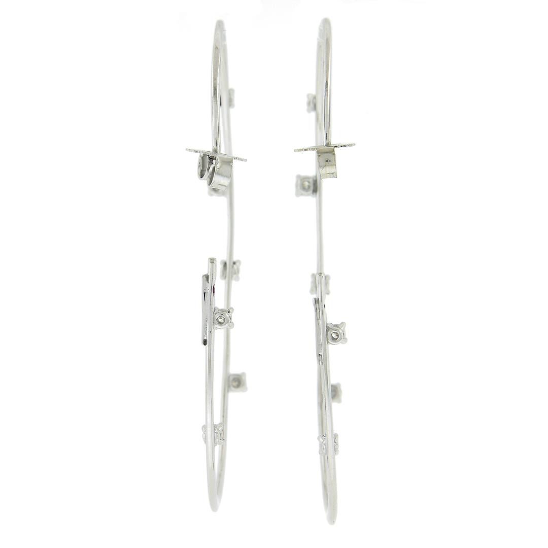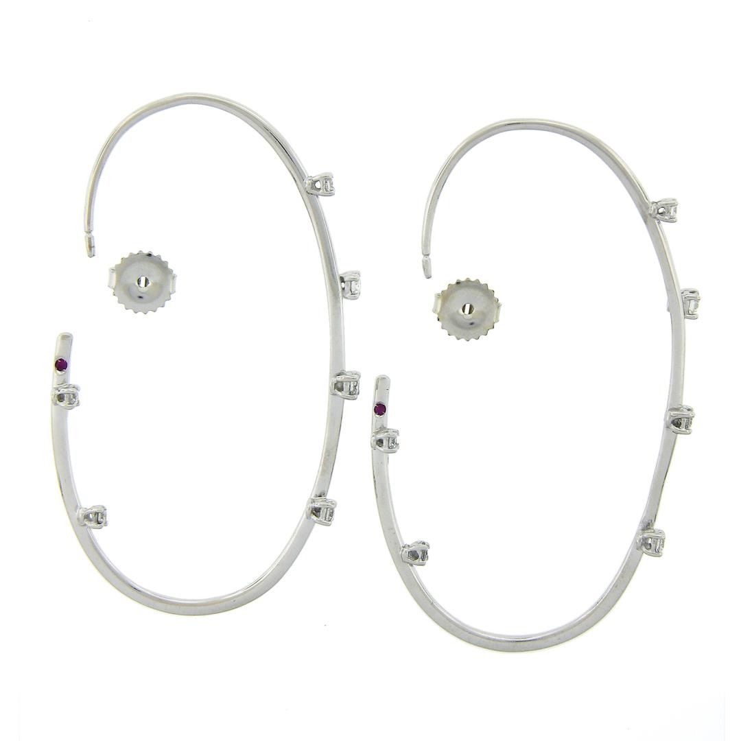 A solid 18k white gold hoop earrings by Roberto Coin, featuring 12 round cut natural diamonds (G/H - VS1/VS2 ; 0.50ctw ), and 2 round cut natrual ruby The earrings measure approximately 58.1x3.1mm and weigh a total of 6.39 grams.