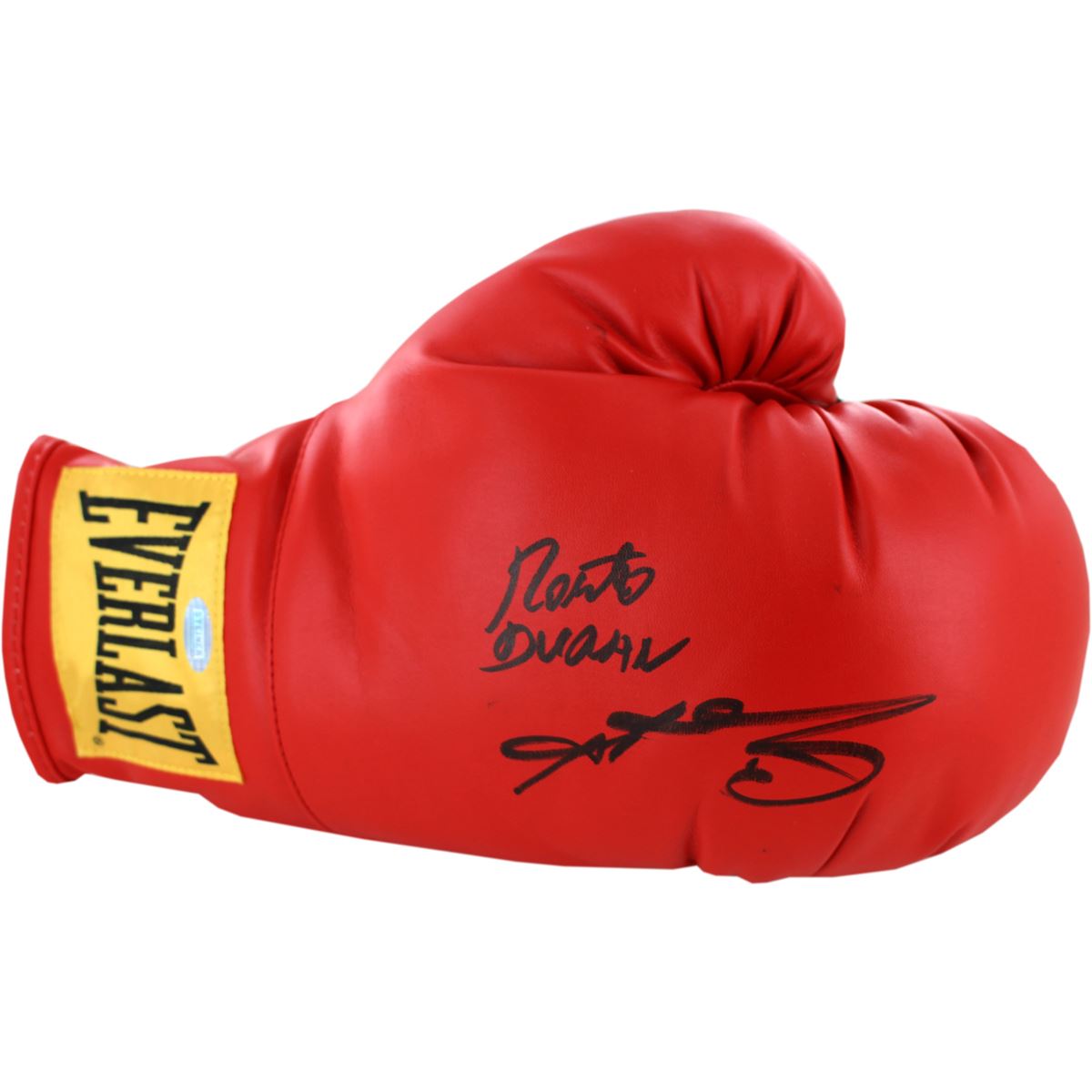 Roberto Duran/Sugar Ray Leonard Dual Signed Red Boxing Glove (Yellow Everlast Patch)