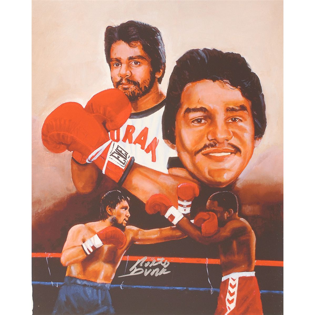 Color composite giclee of Duran in and out of the ring, 16 x 20, signed in silver ink by Duran. In fine condition.