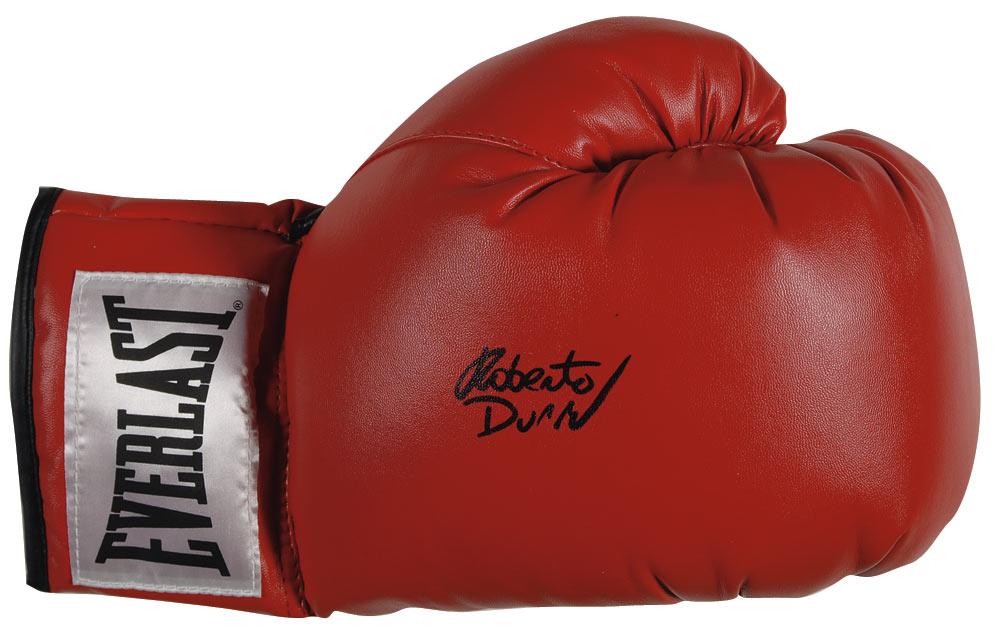 Everlast right-handed boxing glove signed in black felt tip on the top. Accompanied by a photo taken at time of private signing. In very fine condition. Pre-certified Steve Grad/PSA/DNA and RRAuction COA.