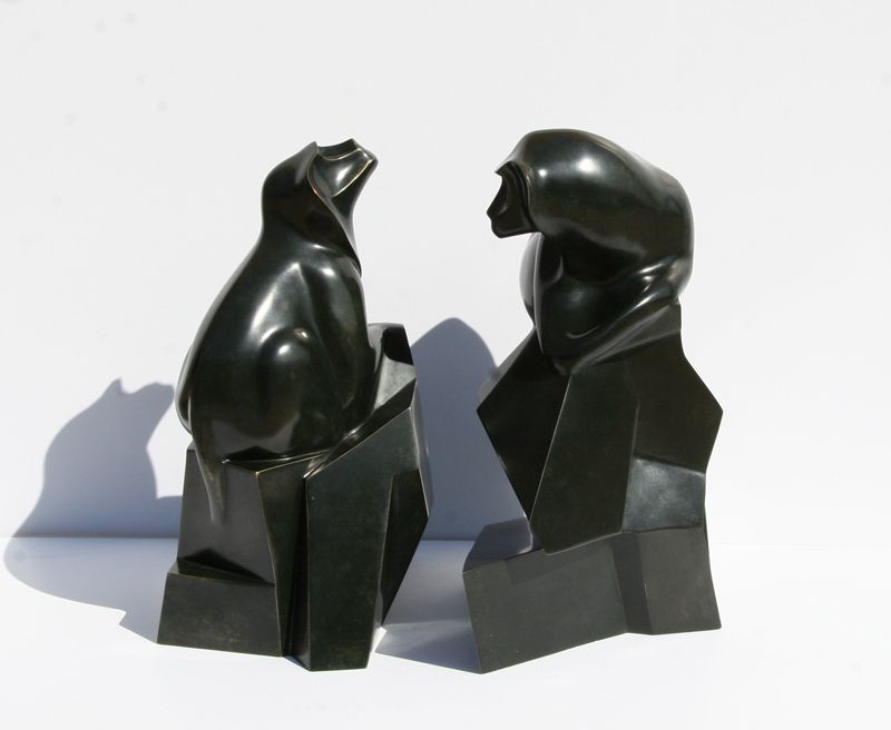 Roberto Estevez, Pair of Two Baboon Bronze Sculptures