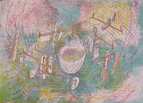 INTEROGATION HUMAINE, 1980, color lithograph, signed in pencil, from the numbered edition of 200, sheet 22 x 30”, published by Franklin Arts, with the artist’s blindstamp. $600/900.