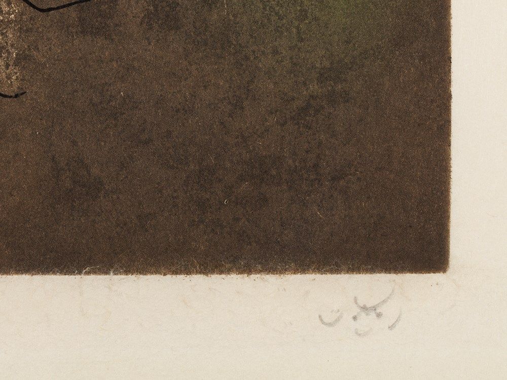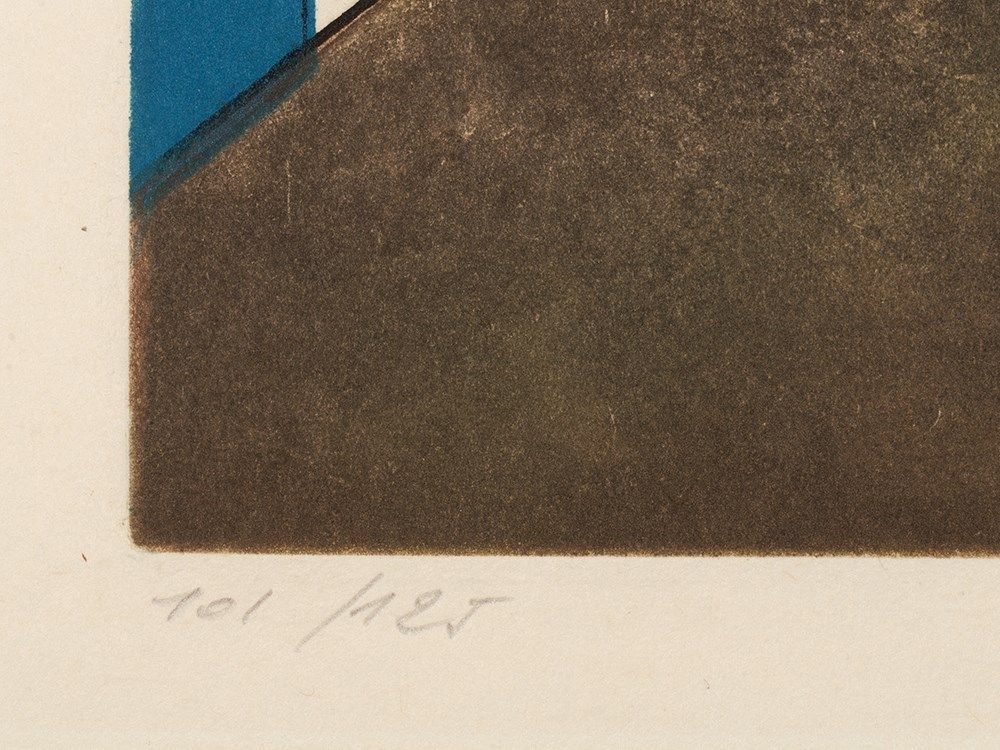 The etching is provided lower right with the artist signet in pencil and numbered lower left ‘101/125’. The sheet is skillfully mounted on the upper edge at two points and matted. It is overall in very good condition. Plate size: 49 x 68.5 cm; sheet size: 59.5 x 82.5 cm; overall dimensions framed: 89.5 x 71.5 cm. The frame with slight traces of use.