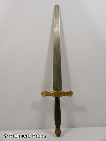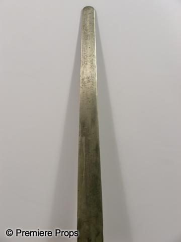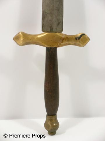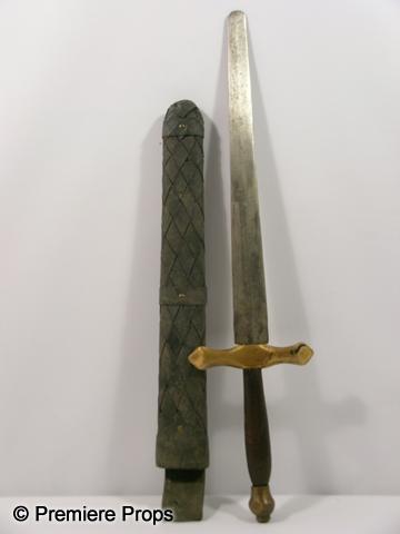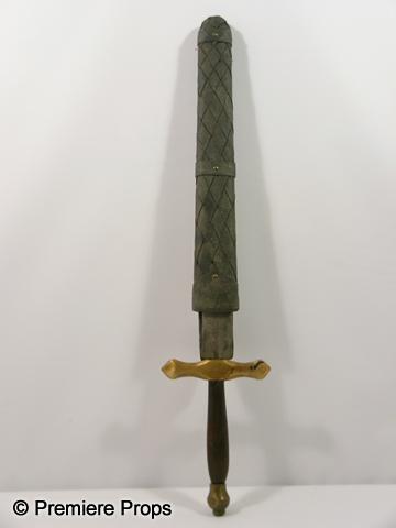 The Adventures of Robin Hood (1938) - Robin Hood screen used sword. This sword was used by one of Prince John's Archers. The sword can be seen in two different scenes of the film. The first, when Robin Hood insults Prince John at the feast and he calls out the Archers to sieze him. The sword is on the belts. The second scene is at the end, after the main battle. The sword without the scabbard can be seen as it is thrown into a pile of swords. It is made of steel wood and leather. Essentially it is a real sword and can be referred to as a falchion or Archer's short sword. (approx. 27 3/4 long). This item is oversized and will require additional shipping charges. Please email for shipping rates prior to bidding.