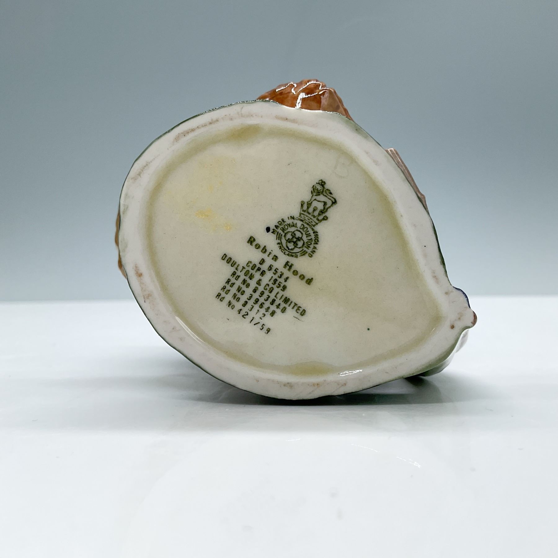 Style Two. Brown hat with white feather on one side and oak leaves and acorns on the other; green robes. Royal Doulton backstamp.