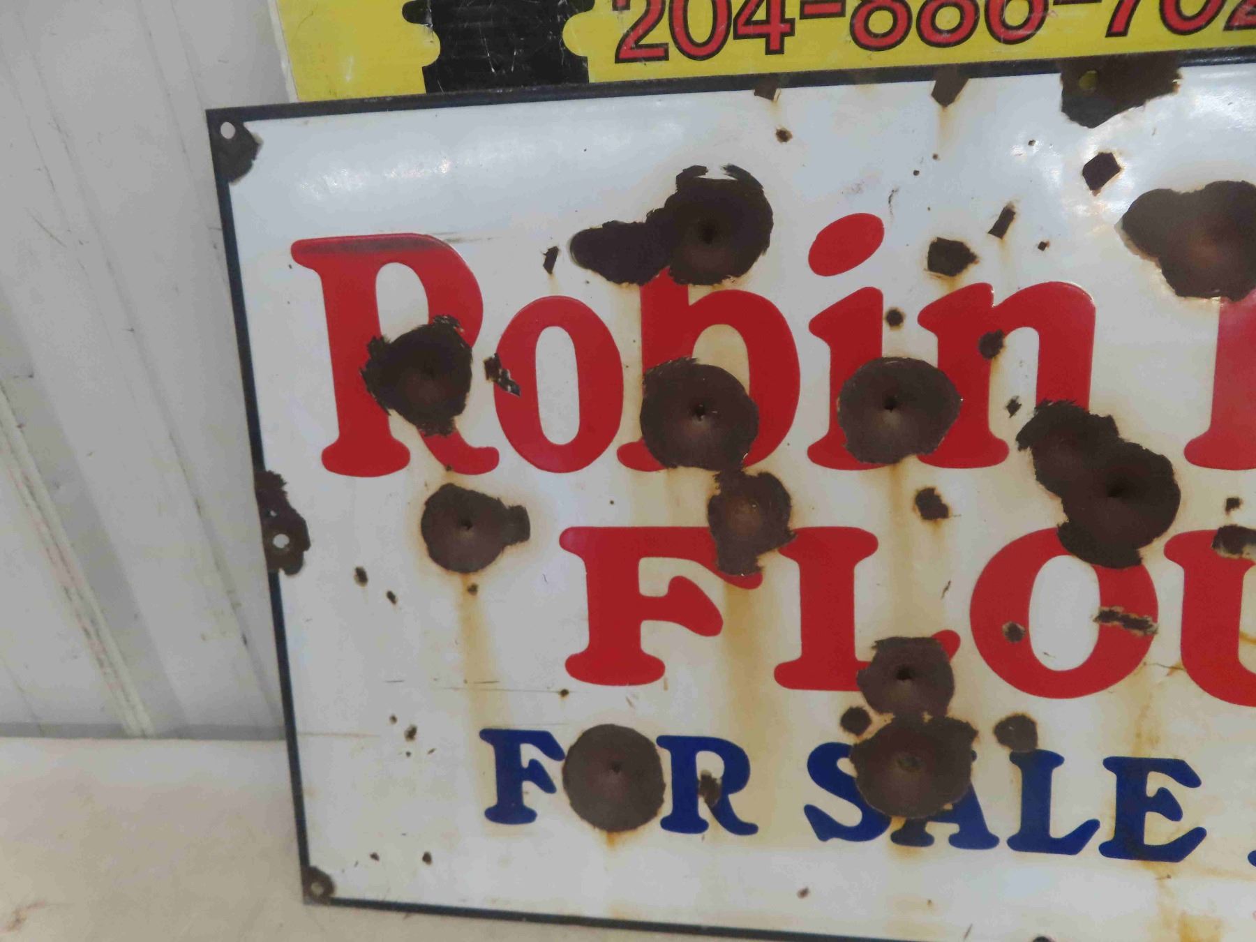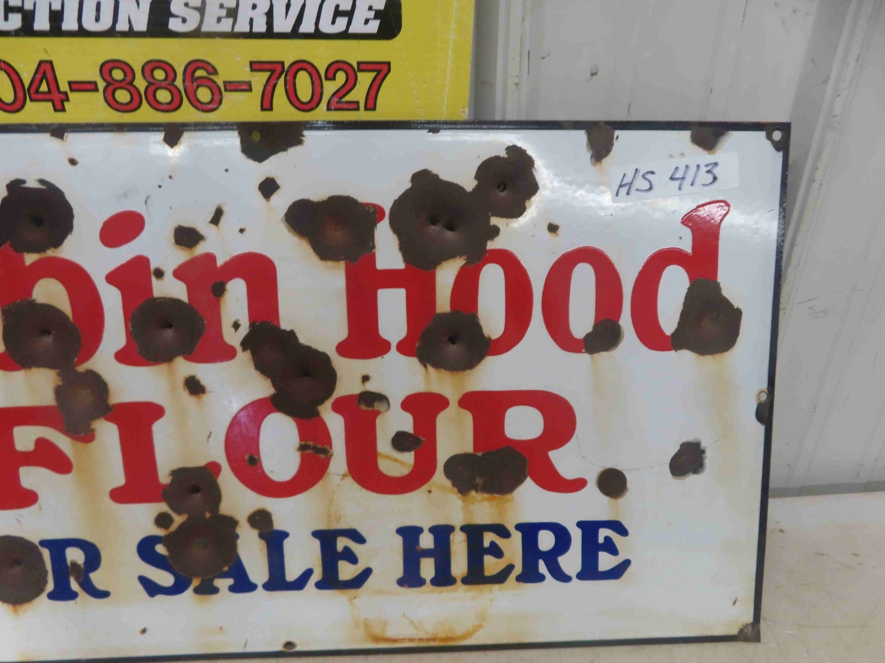Robin Hood Flour Porcelain Sign 15" x 28" - bullet Damage