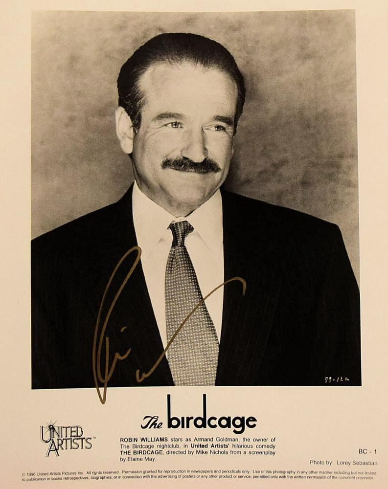 Portrait Photo of Robin from the Movie The Birdcage signed by Robin Williams. 8x10 inches. This item is a reprint of an original autograph