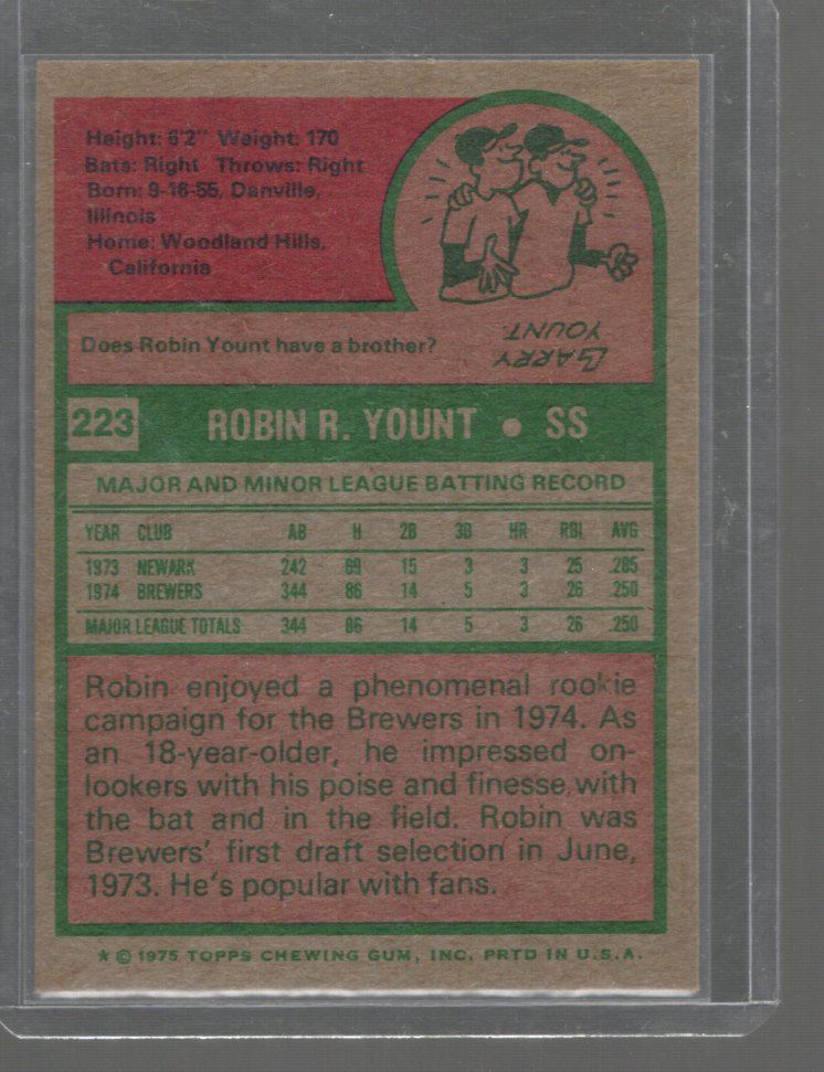 Robin Yount Rookie Card 1975 Topps #223 Very Good Condition