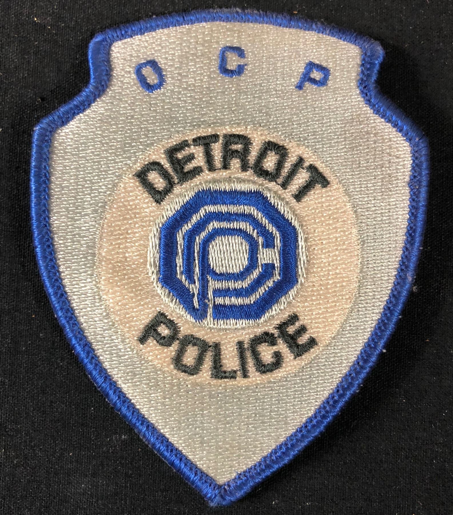 Production made unused police patch made for the Paul Verhoeven directed cyberpunk action film RoboCop (1987), where in a dystopic and crime-ridden Detroit, a terminally wounded cop returns to the force as a powerful cyborg haunted by submerged memories.