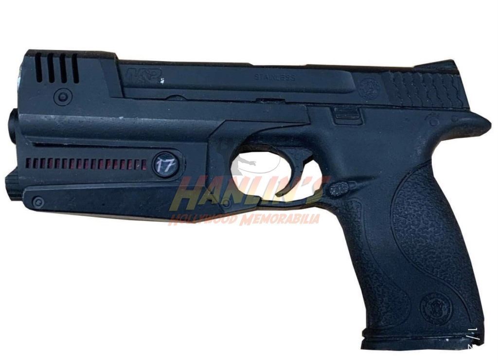 Original pistol used by "Rick Mattox", played by Jackie Earle Haley in the cyberpunk Superhero production of 'RoboCop' (2014), where in 2028 Detroit, when Alex Murphy, a loving husband, father and good cop, is critically injured in the line of duty, the multinational conglomerate OmniCorp sees their chance for a part-man, part-robot police officer.