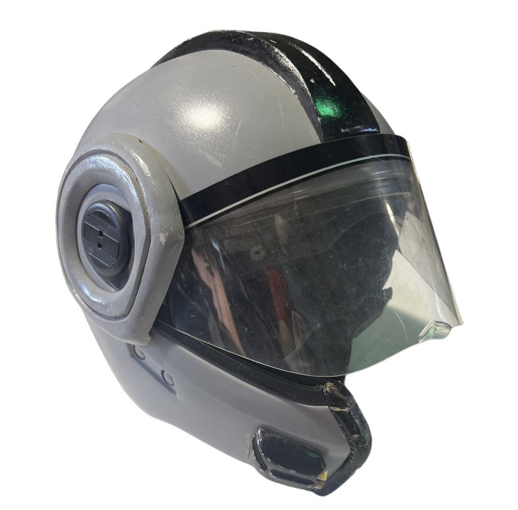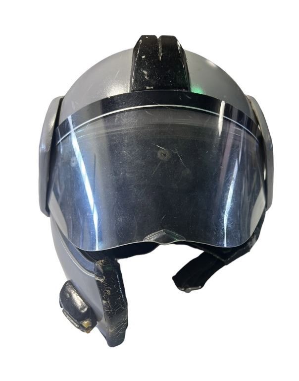 Original helmet used by a member of the OCP Security Force from the Fred Dekker directed science fiction action film 'RoboCop 3' (1993), set in the near future in a dystopian metropolitan Detroit, Michigan, the plot centers around RoboCop (Burke) as he vows to avenge the death of his partner Anne Lewis (Allen) and save Detroit from falling into chaos.