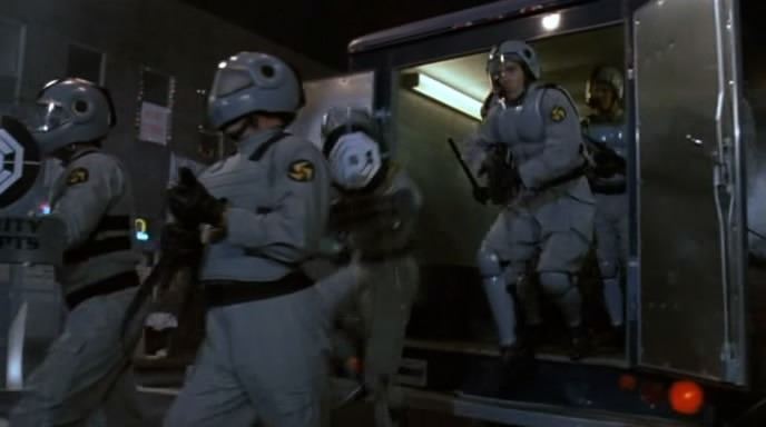 In the film, the OCP creates a heavily armed private security force called the Urban Rehabilitators, nicknamed "Rehabs", under the command of Paul McDaggett, to forcibly relocate the evicted citizens such as the residents of the now condemned Cadillac Heights.