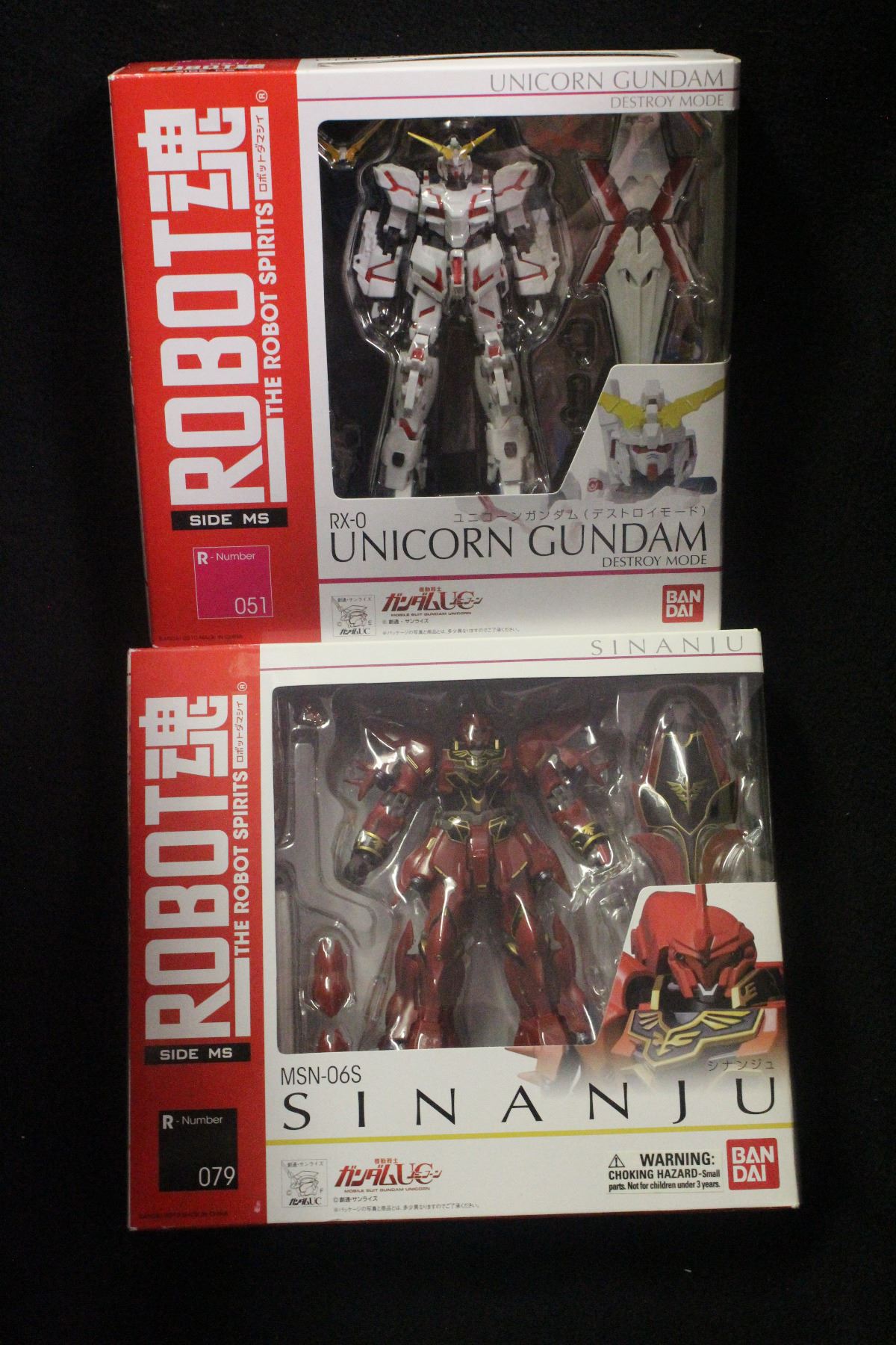 Robot Spirits #051 Unicorn Gundam Destroy Mode & #079 Sinanju Action Figures Bandai