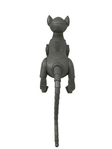 A Y2K-era robotic cat sculpture that was designed by Dave Nelson and Norman Tempia of AnimatedFX, a Los Angeles-based company specializing in animatronics, puppets, and special effects for film and TV. With decades of experience, AnimatedFX has created countless memorable characters for the entertainment industry. This static sculpture captures the essence of their robotic creations, offering a unique and futuristic piece for any collector.