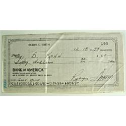 Check signed by Robyn C. Smith (Fred Astaire's Girlfriend) Dated 12/18/1979 for $60, Memo reads "Golf Clubs", laminated. From the Estate of Eugene O. Perkins