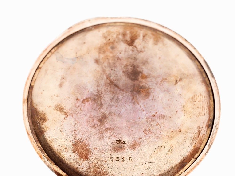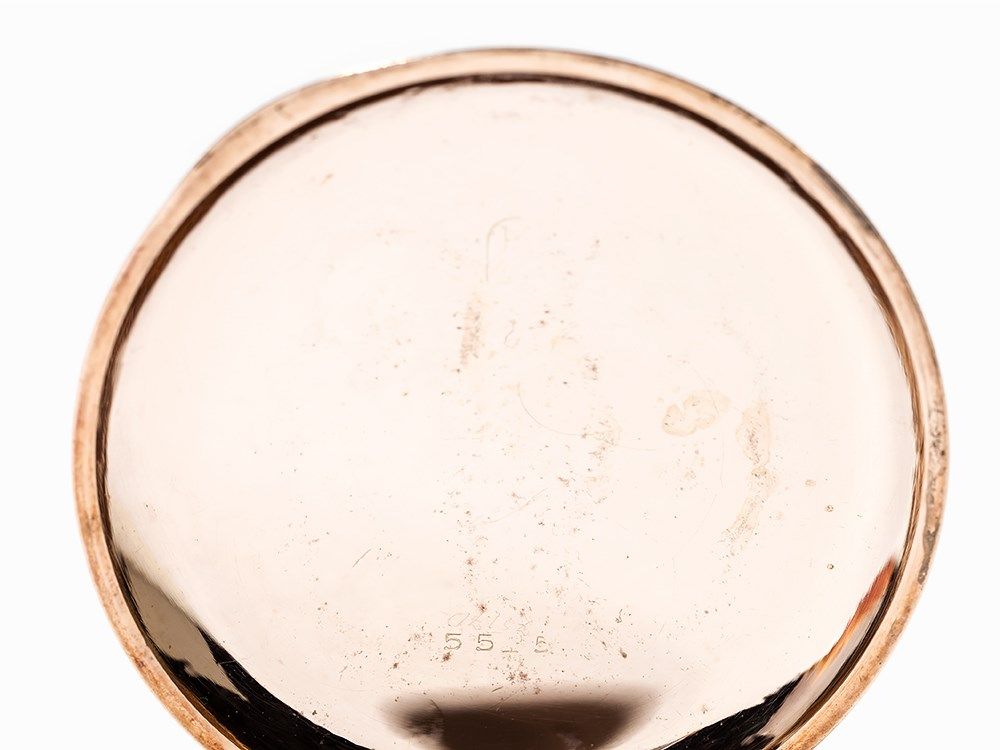 The watch case measures 49 mm in diameter and 14 mm in height. The pocket watch chain is ca. 45 cm long. The watch weighs 105 grams. The timepiece is in good condition with traces of wear. During in house testing the watch was fully functional. Long-term precision and regularity cannot be guaranteed.