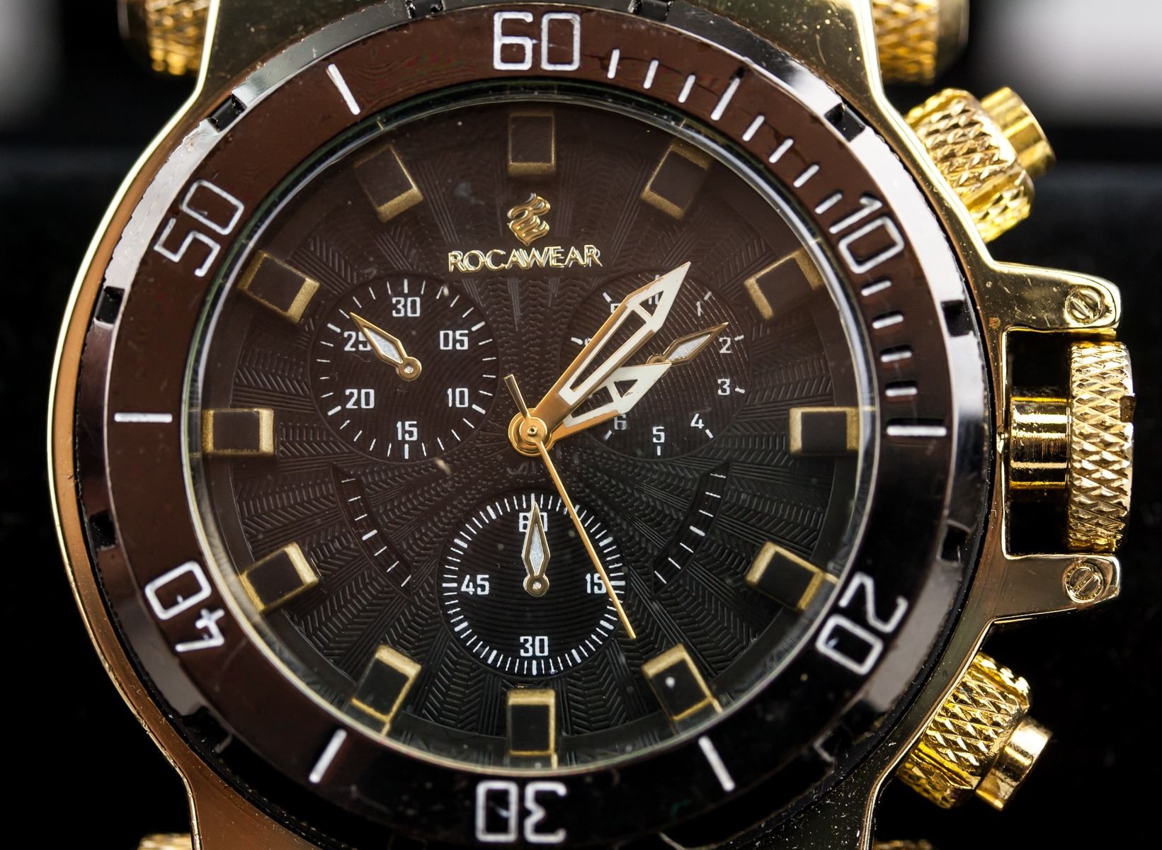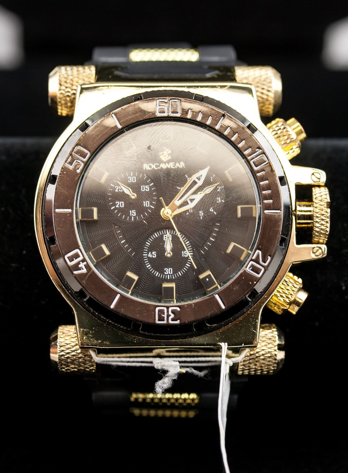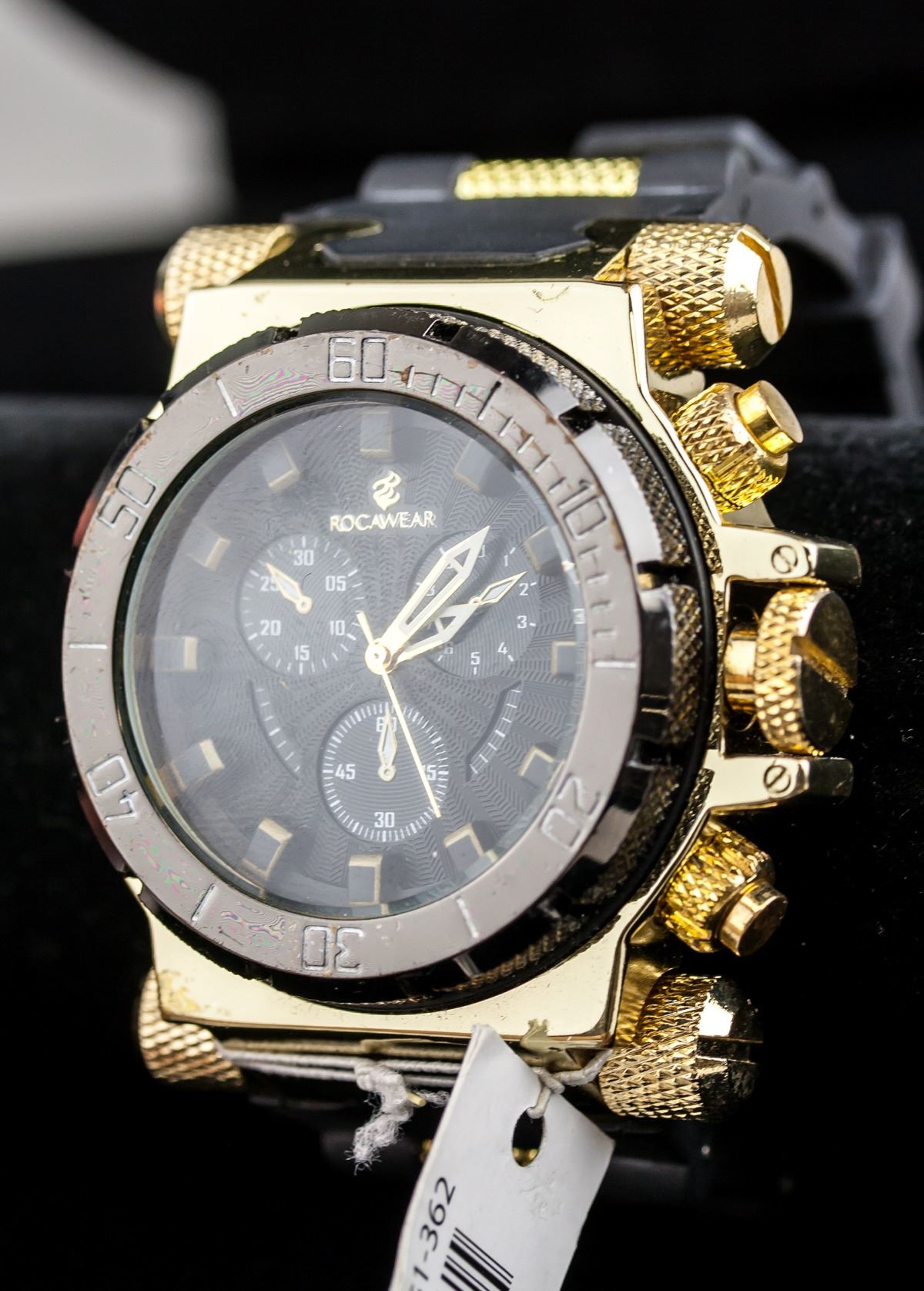 Rocawear Chronograph Watch. Stainless steel backing. Quartz movement. RM0231. Retail value $200.