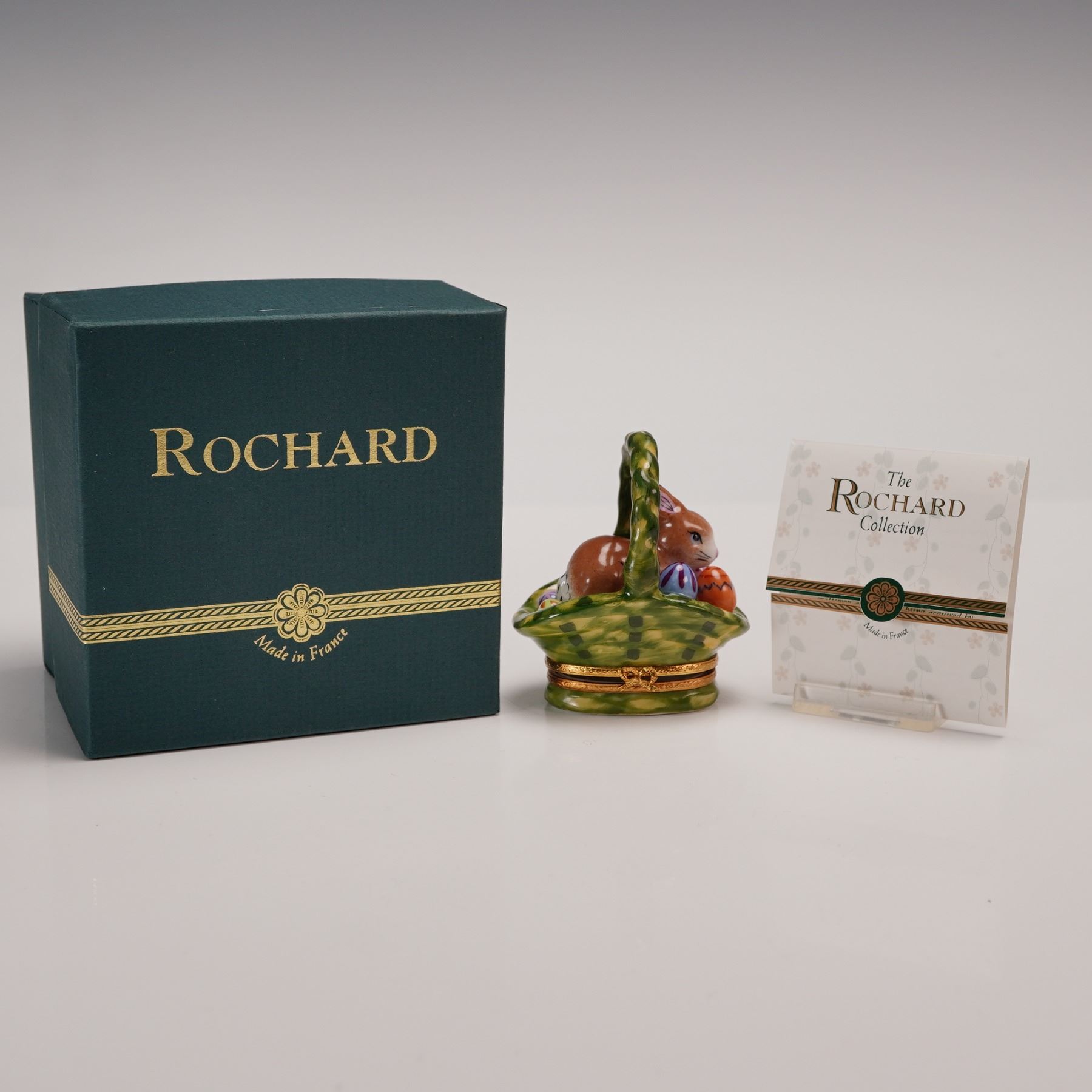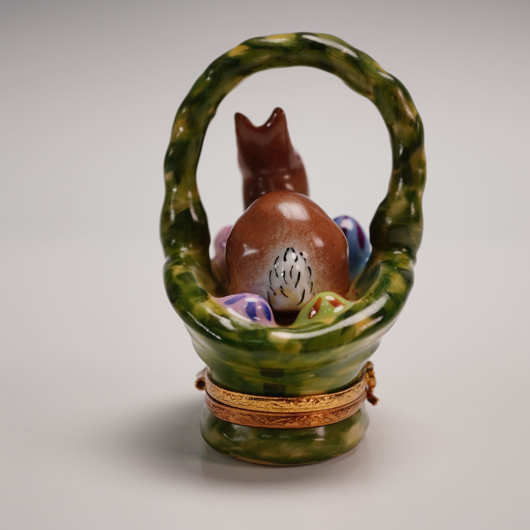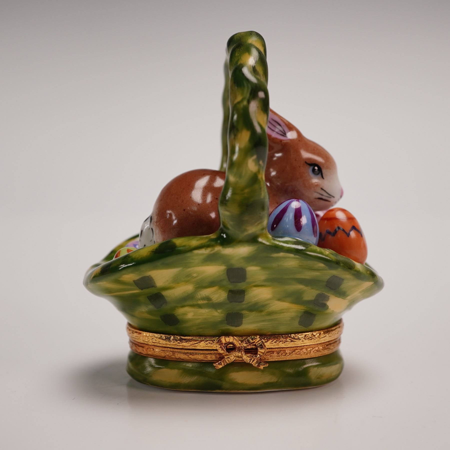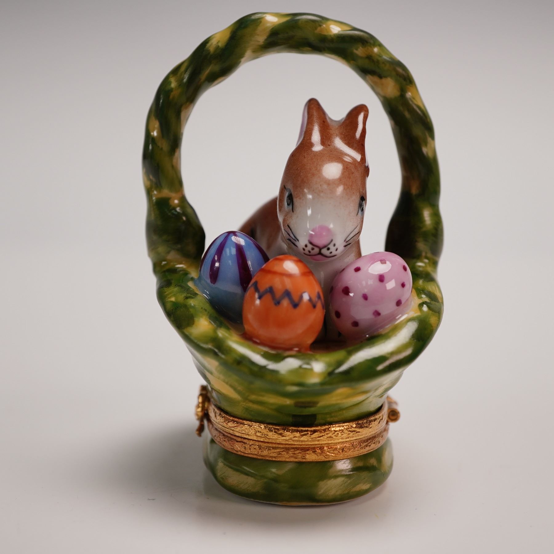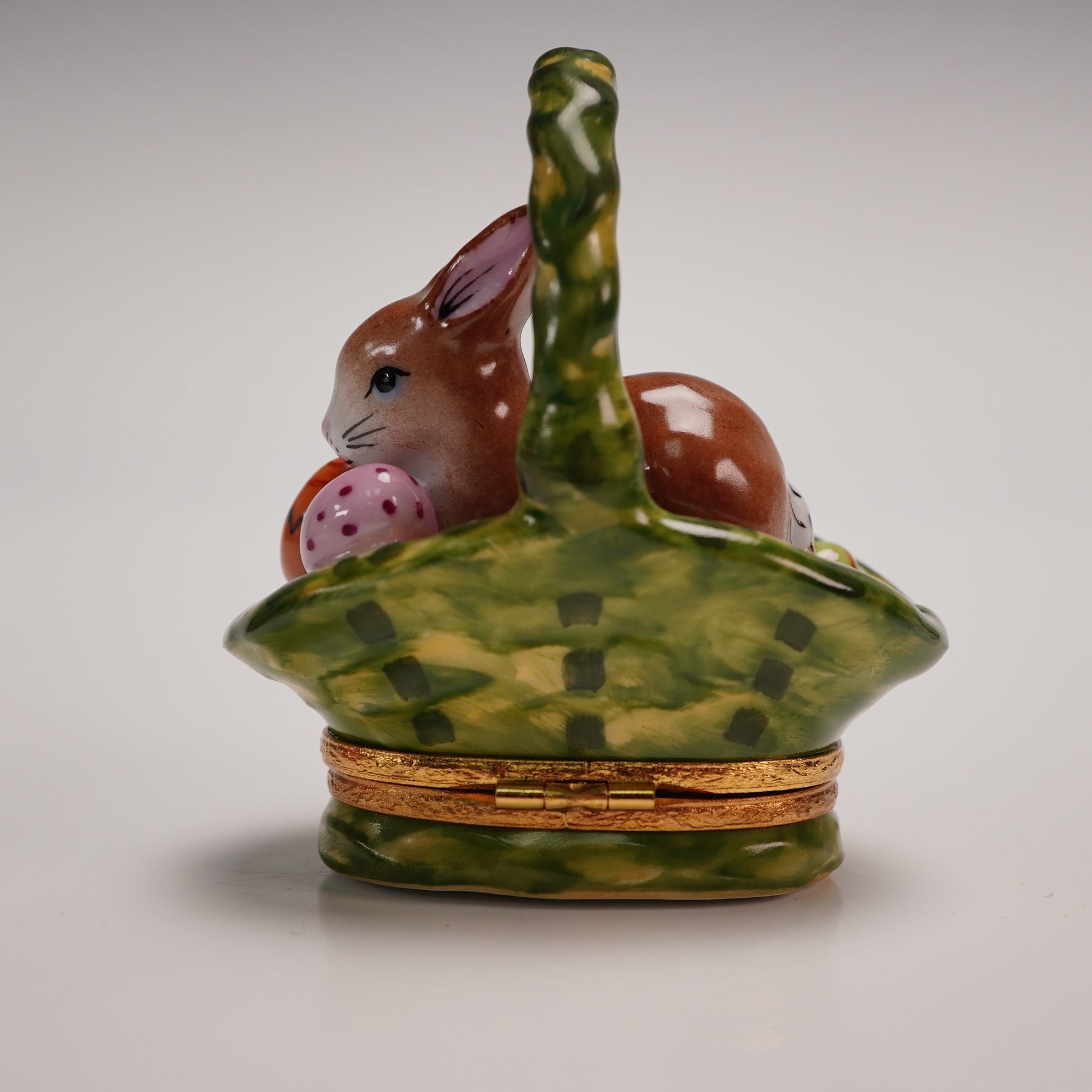 Rochard Limoges Porcelain Box, Rabbit in Basket