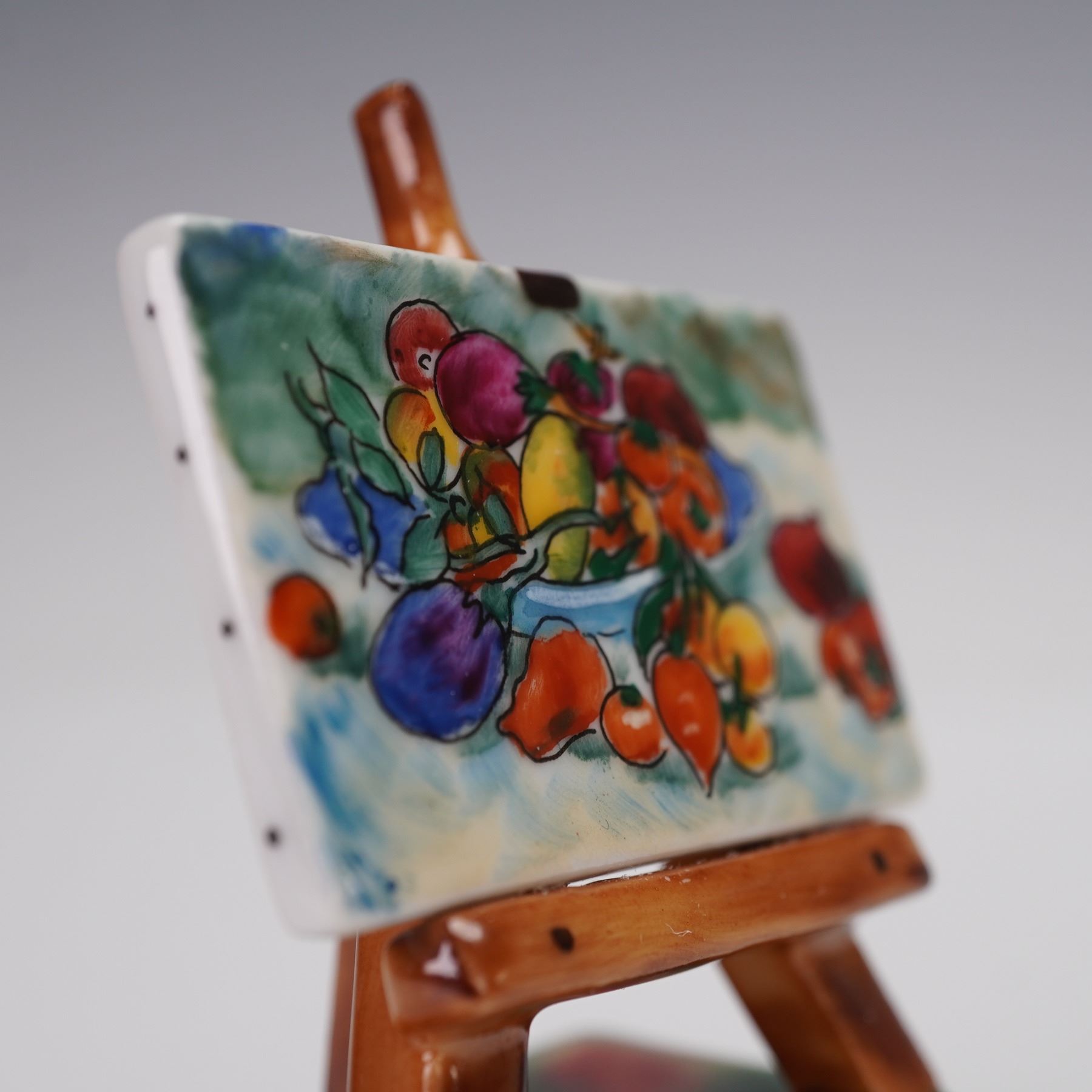 Rochard Limoges Porcelain Treasure Box, Fruit Still Life Canvas on Easel