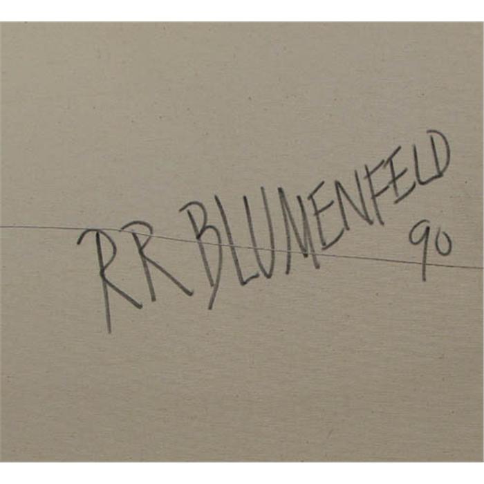 Signature: signed R. R. Blumenfeld 90 lower right , and signed, dated, and titled on canvas reverse