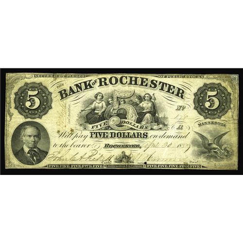 Rochester, MN- Bank of Rochester $5 April 20, 1859 G6A Rochester, MN- Bank of Rochester