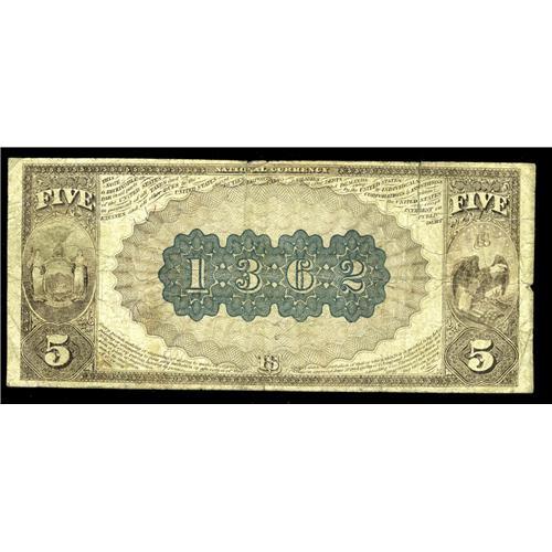 <B>Rochester, NY</B></I> - $5 1882 Brown Back Fr. 469 <B>The Flour City NB </B></I> Ch. # (E)1362<BR>Here is a note not listed in the Kelly census data which currently numbers 15 notes. This example has paper softness and a tear into the portrait area.The signatures are quite strong with the Vice-President signing this example. <B>Very Good+.</B></I>