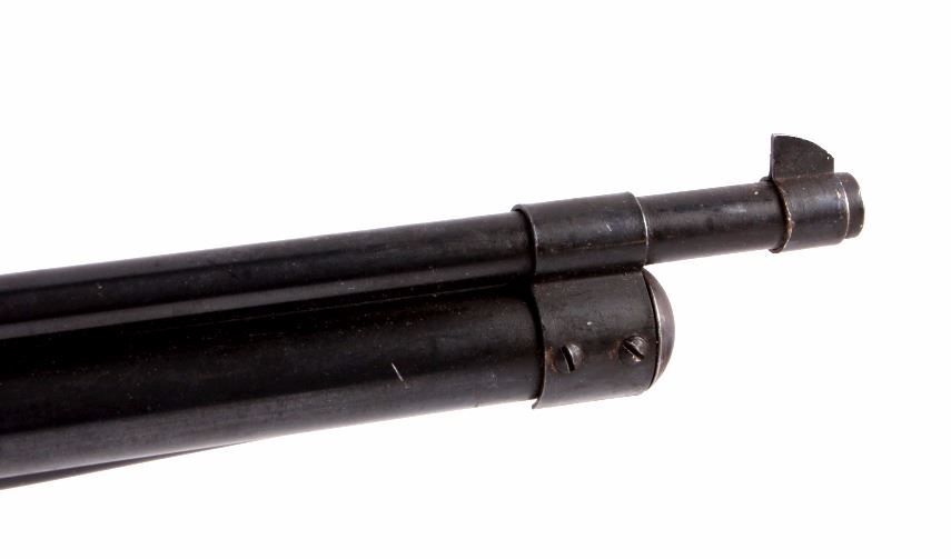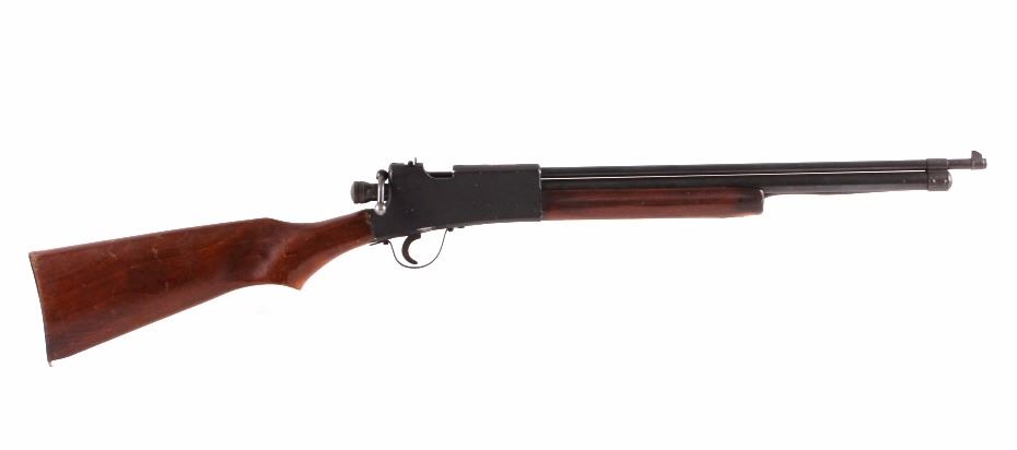 This is a Rochester Precision air rifle. The rifle features a bolt action with a fore stock pump. The stock is made from solid wood. The barrel is marked "Rochester Precision Air Rifle Rochester, New York". The air rifle is in good overall condition. It measures 36.5" long.