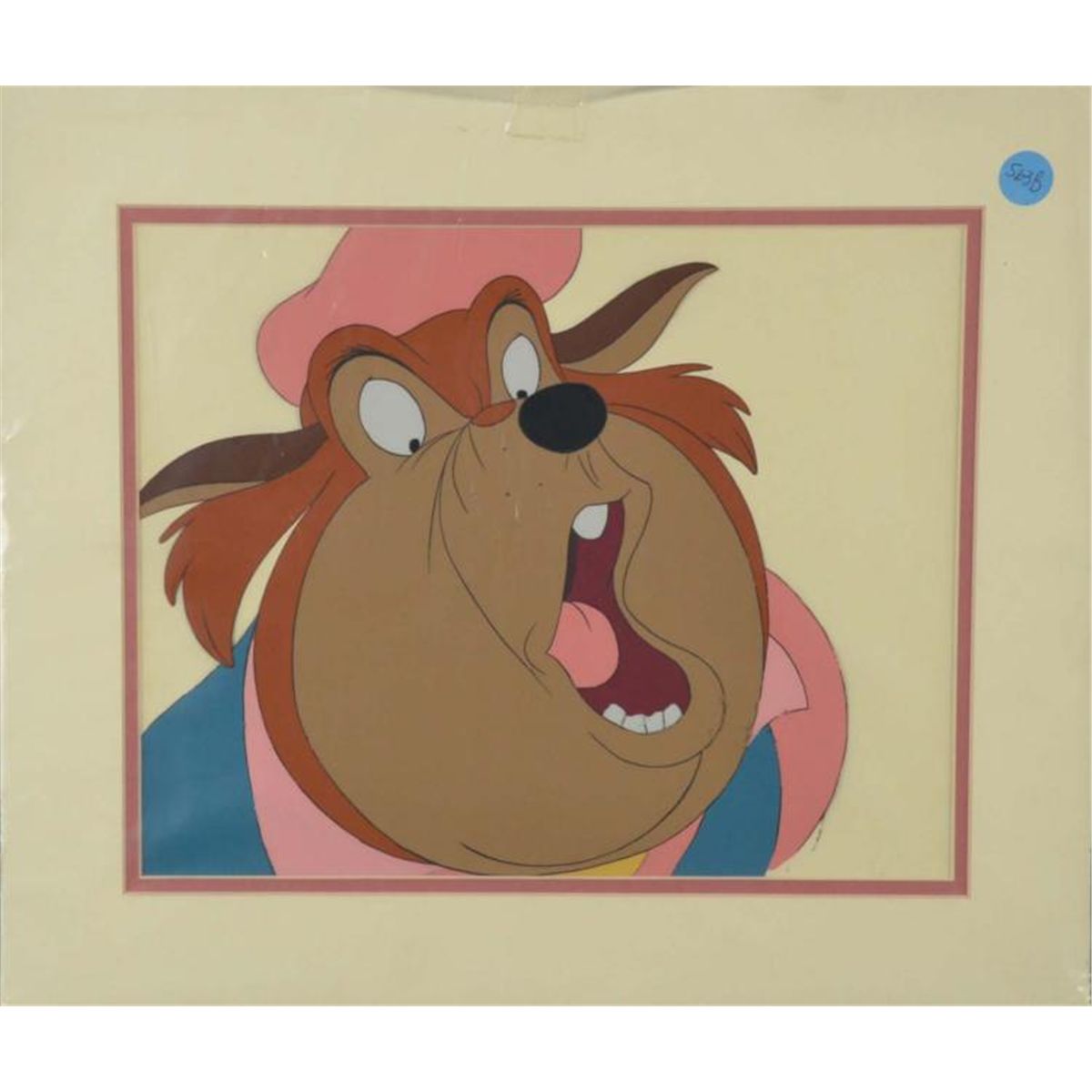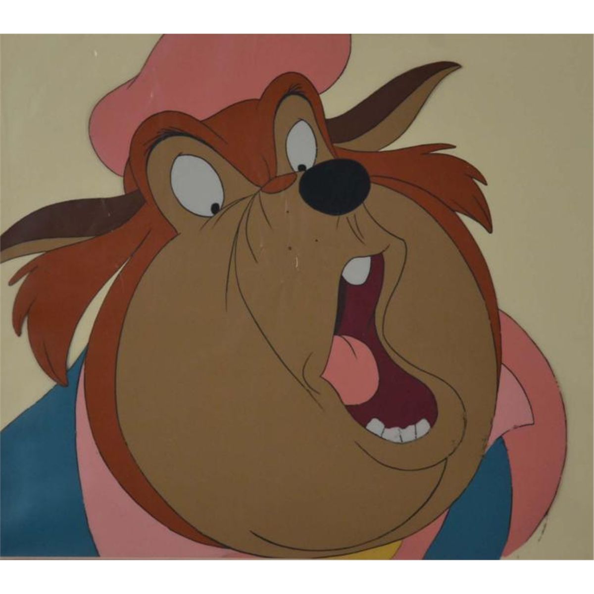 This is an original animation cel used in the production of the 1991 Don Bluth film Rock-A-Doodle. This is a big dog in a close-up shot. * Medium: Hand painted cel acetate Cel image size: 9 1/4 x 11 3/4 inchesPresentation: Double matted in pink and off-white matte, ready for framingMatte size: 13 1/2 x 15 3/4 inchesCondition: ExcellentCertificate of Authenticity: Included