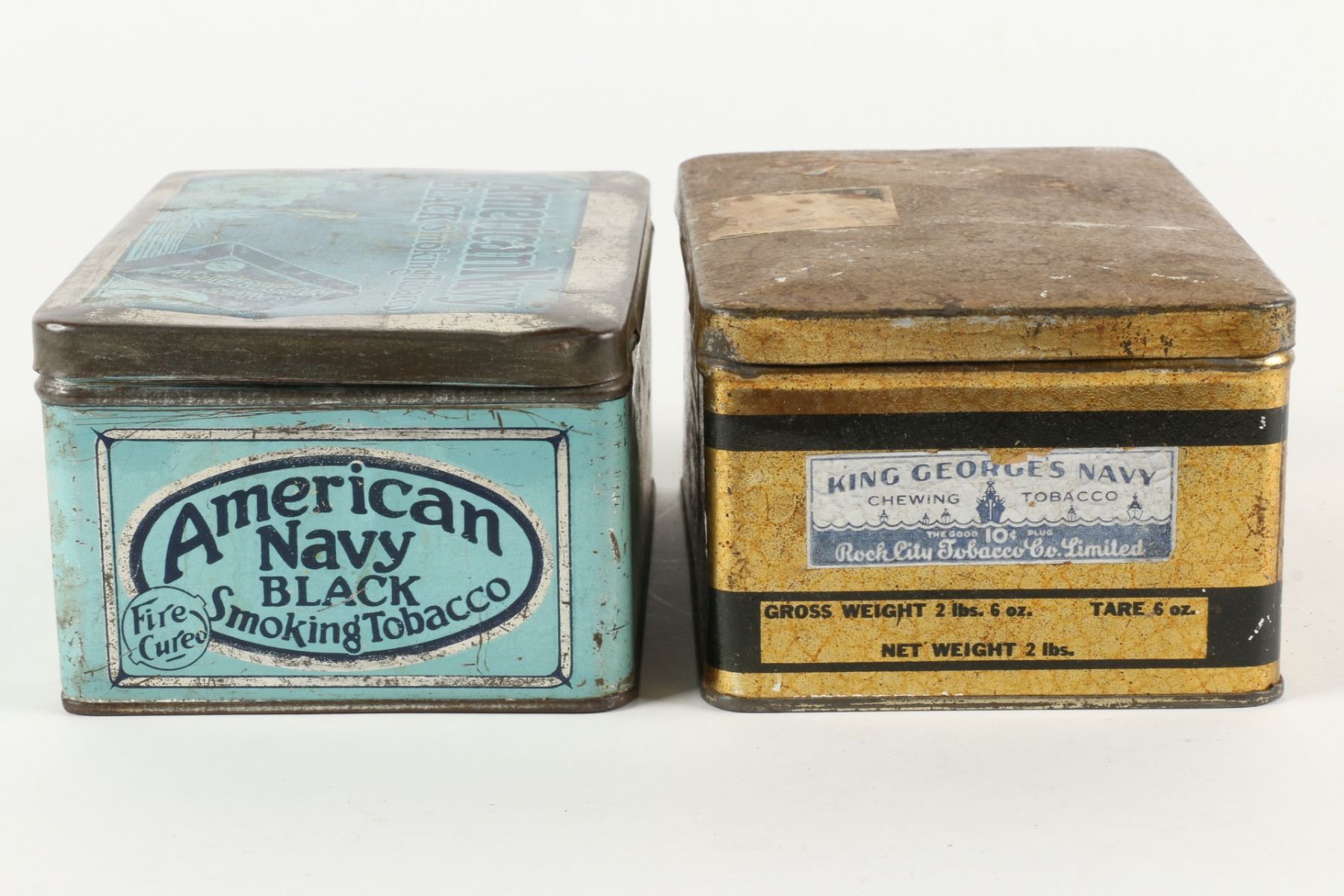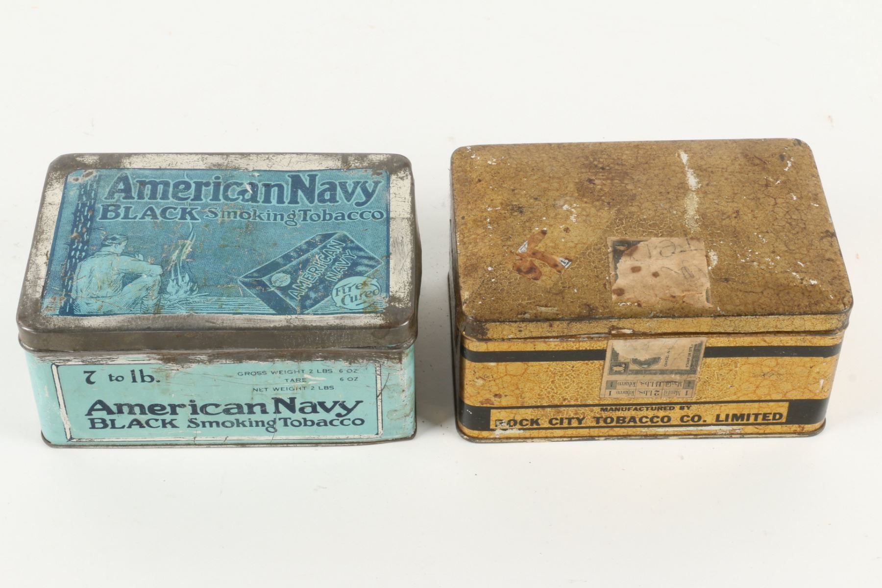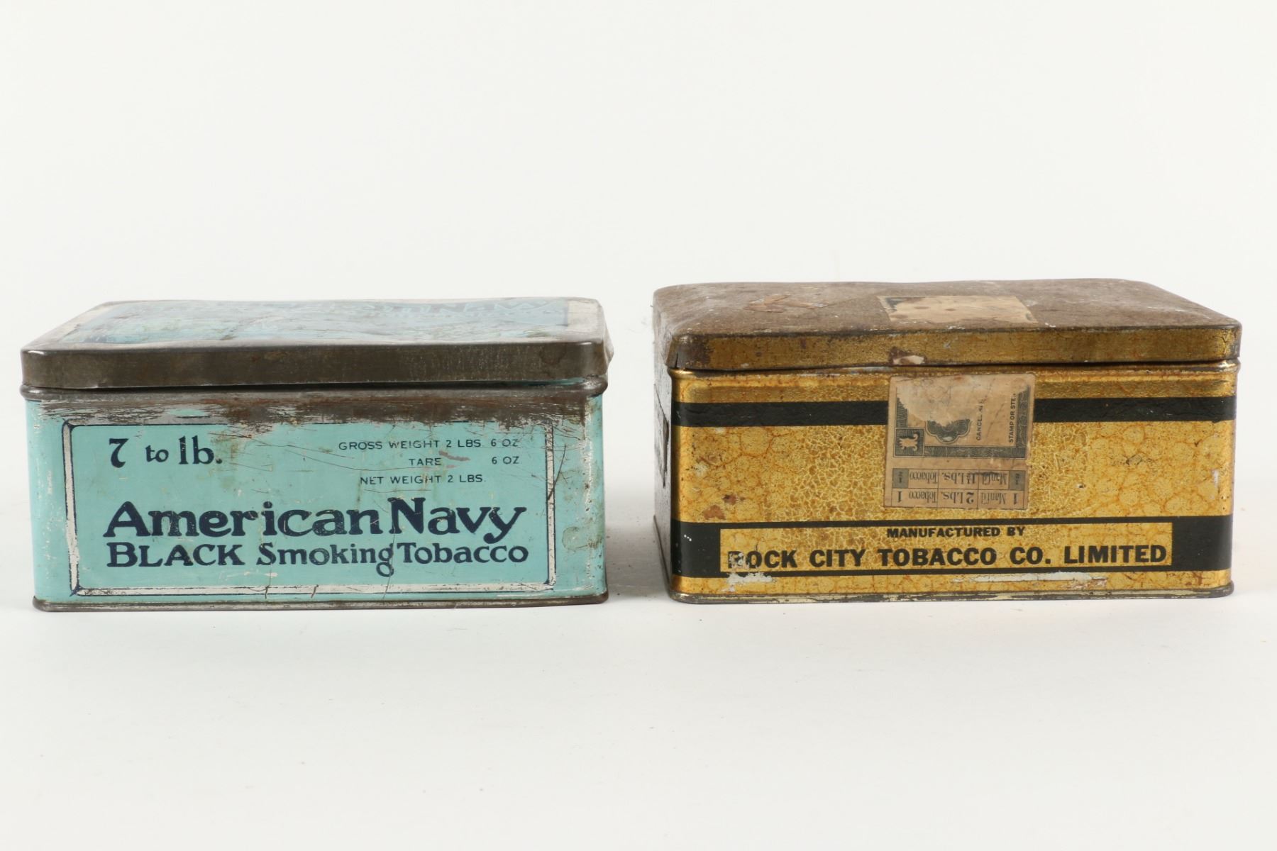 Three (3) items. 2lb size tins. 6lb size crate. 2 lbs, 6 lbs. Scuffs, dings and hand wear. Surface loss. Crate requires top. $75-100.