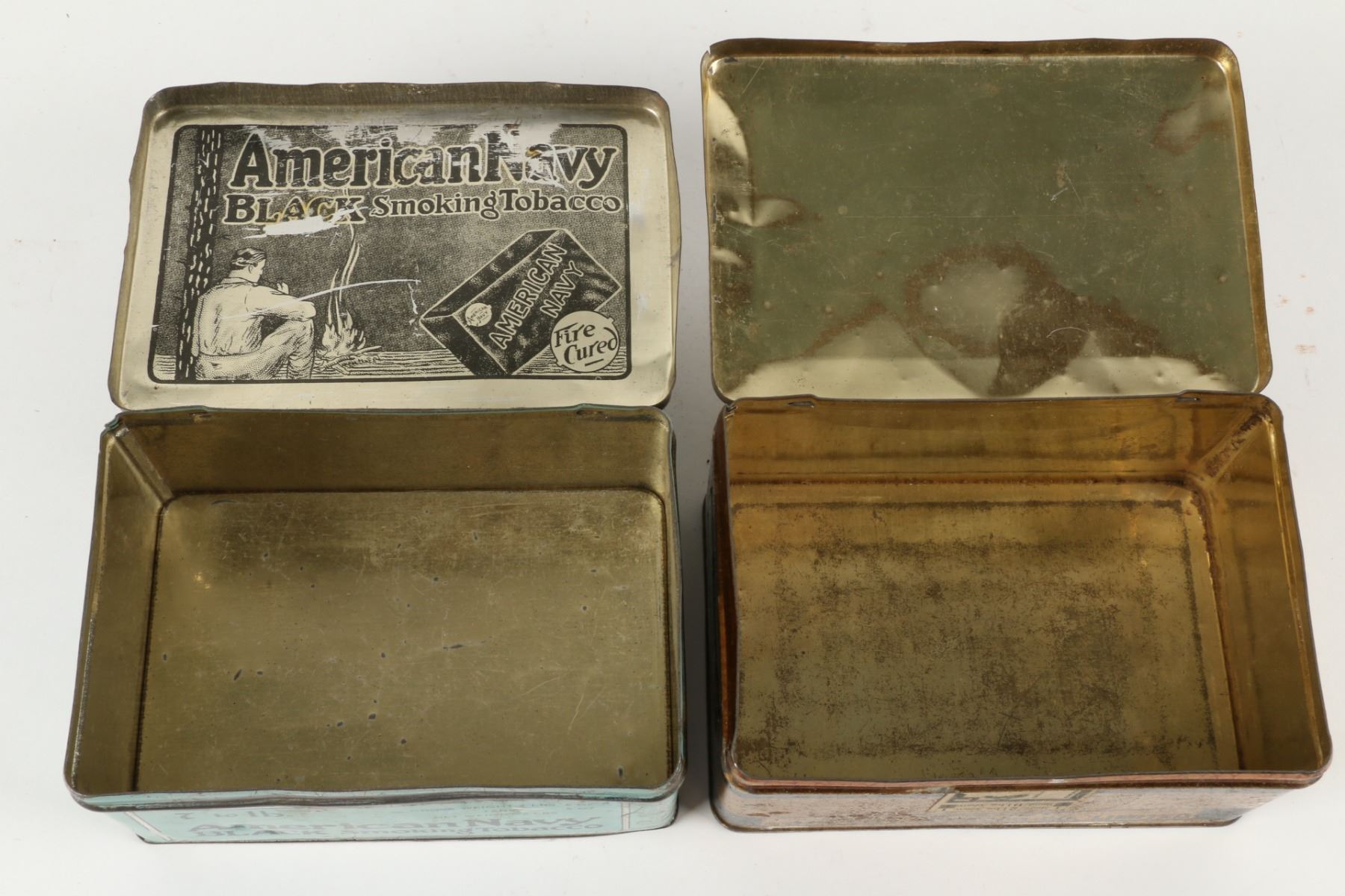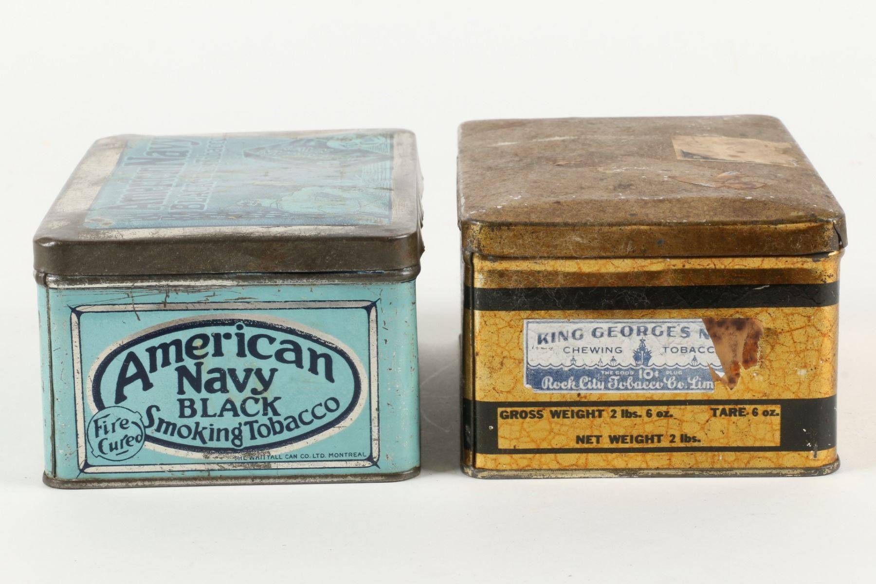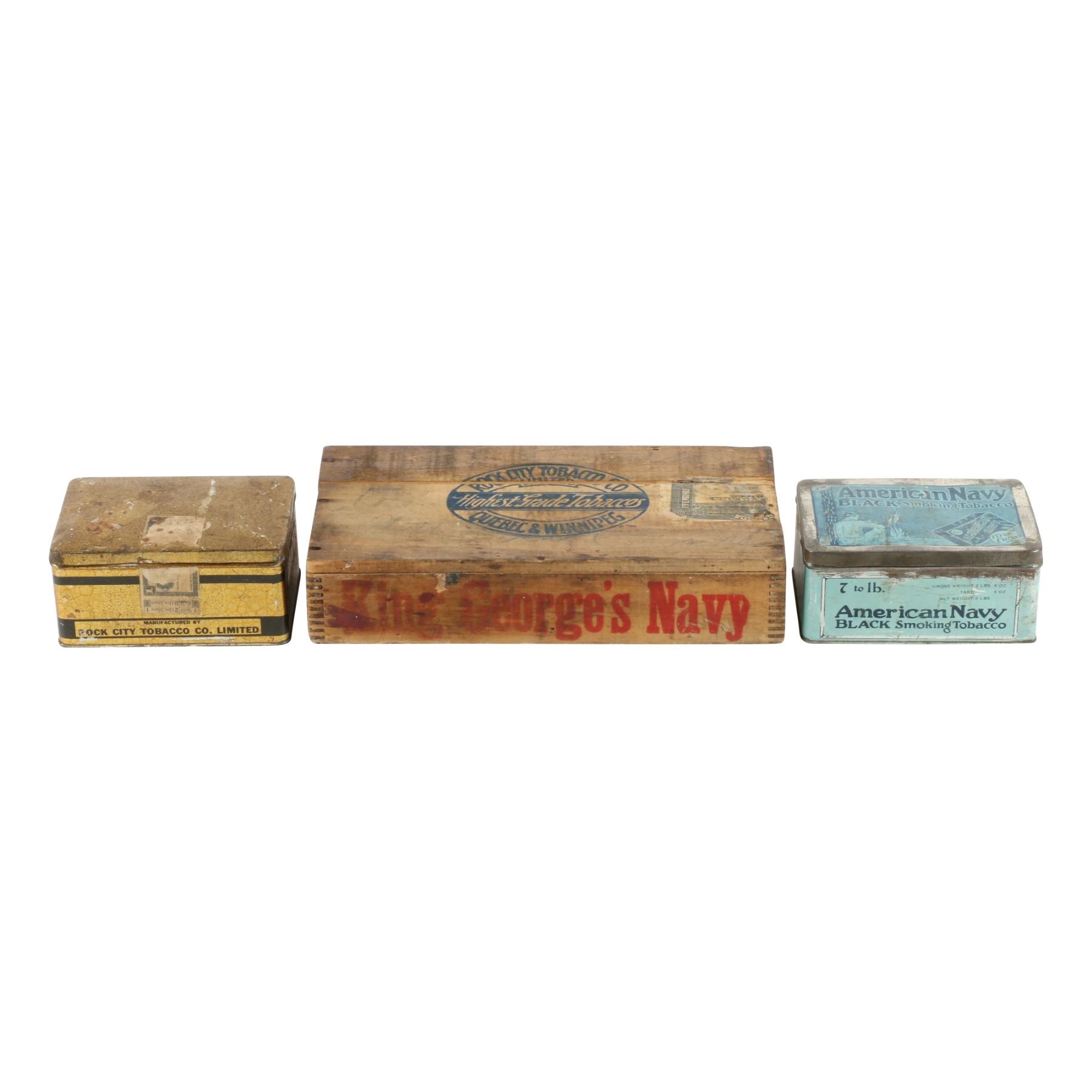 Three (3) items. 2lb size tins. 6lb size crate. 2 lbs, 6 lbs. Scuffs, dings and hand wear. Surface loss. Crate requires top. $75-100.