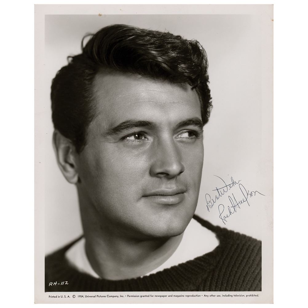 Nice glossy 8 x 10 close-up Universal Pictures publicity photo, signed in black ballpoint, "Best Wishes, Rock Hudson." In very good to fine condition, with streaking to the emulsion, and some light creasing.