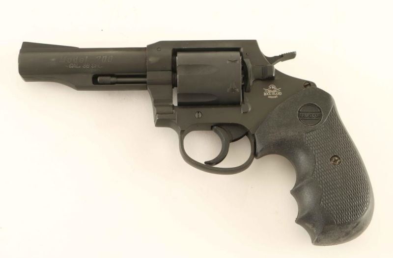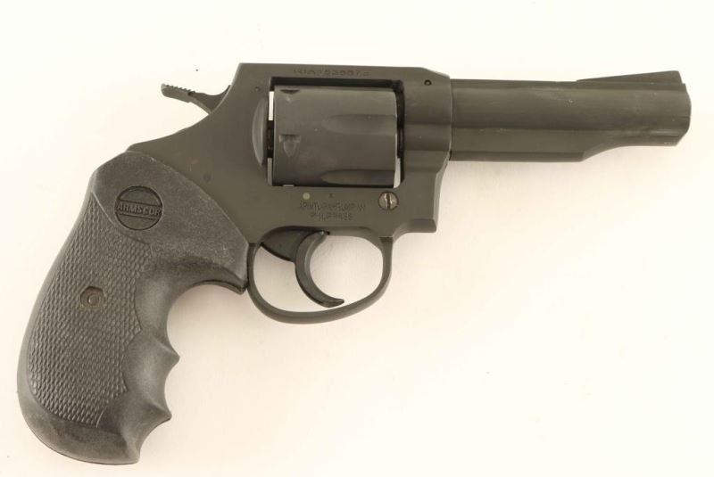Filipino made medium fame double action revolver chambered in .38 Special, circa 2013. Imported by A.P.I. of Pahrump, N.V. with import marks on the right side of the frame. Features a parkerized finish, ribbed 4" barrel, ramp front sight, square channel cut rear sight, shrouded ejector rod, fluted six-shot cylinder, smooth trigger, serrated hammer spur, transfer bar safety and two-piece checkered black composite finger groove grips. Includes a hard case with manual and spent case. Revolver exhibits approximately 95% of it's original finish showing some scattered light wear. Action is smooth with good lock-up, bore is excellent and the synthetic grips are very good. Condition is NRA Very Good. ***Modern Firearm***