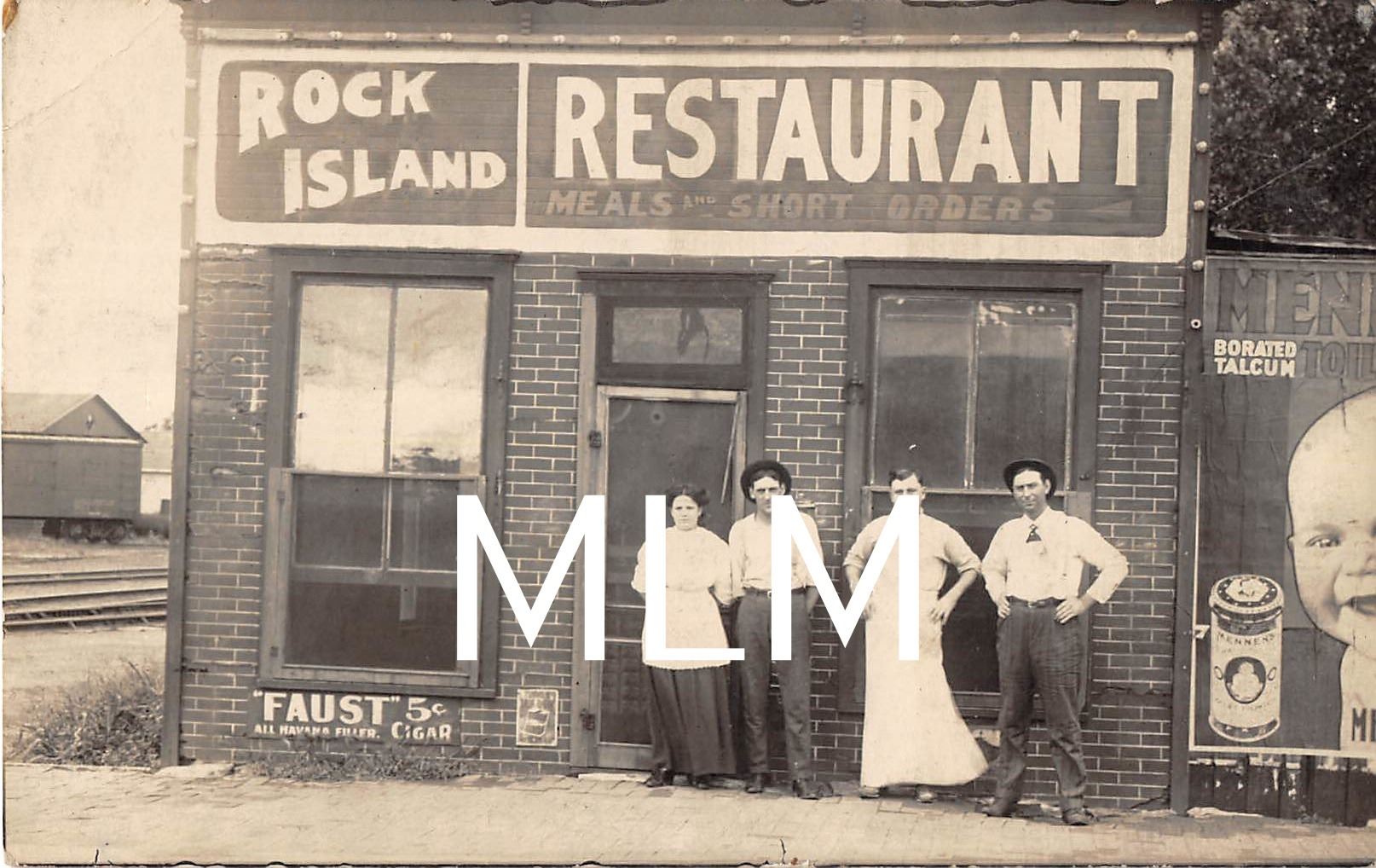 Rock Island Restaurant Front People In Front Between Advertising Signs Photo PC