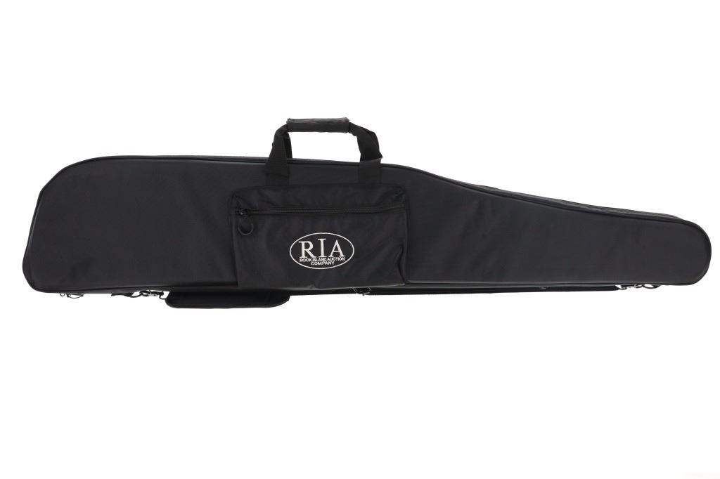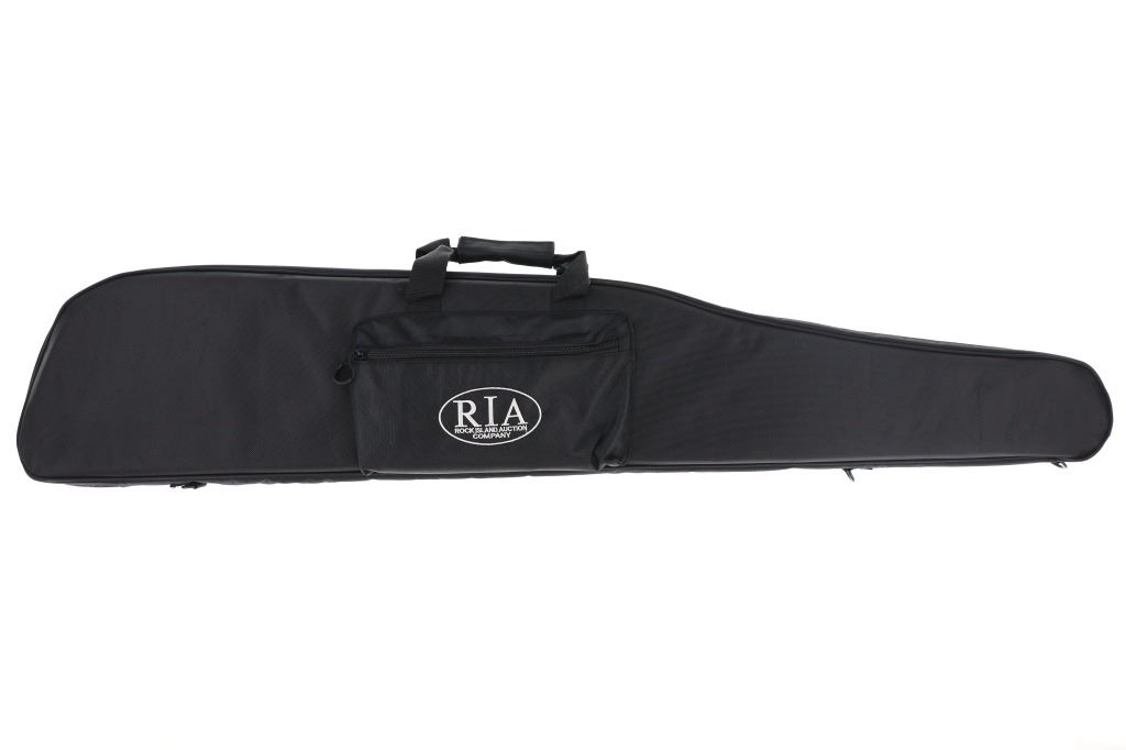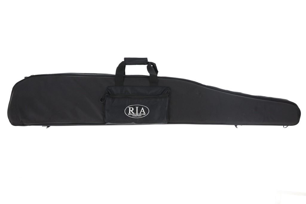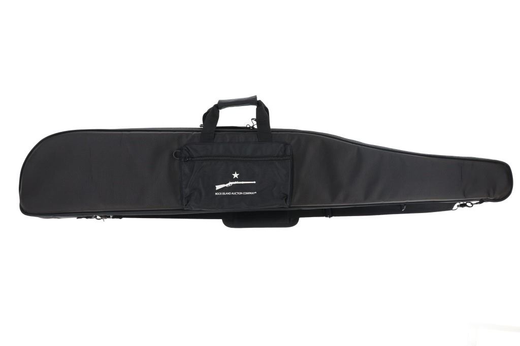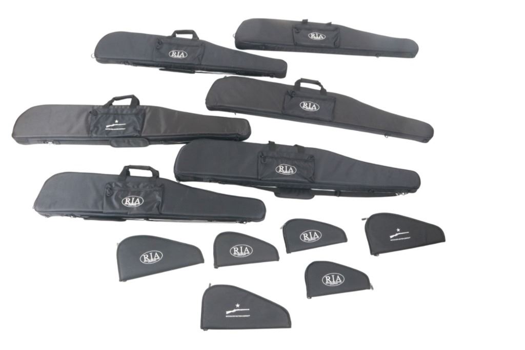 Lot consisting of six (6) new rifle cases with shoulder straps(three extra long and three medium), and six (6) new zipper handgun cases (three large and three medium). The cases are made of black nylon with white stitched Rock Island Logos. The rifle cases measure 54" and 48" long with the pistol cases measuring 17" and 13" long respectively. The collection weighs 17lbs 6oz overall