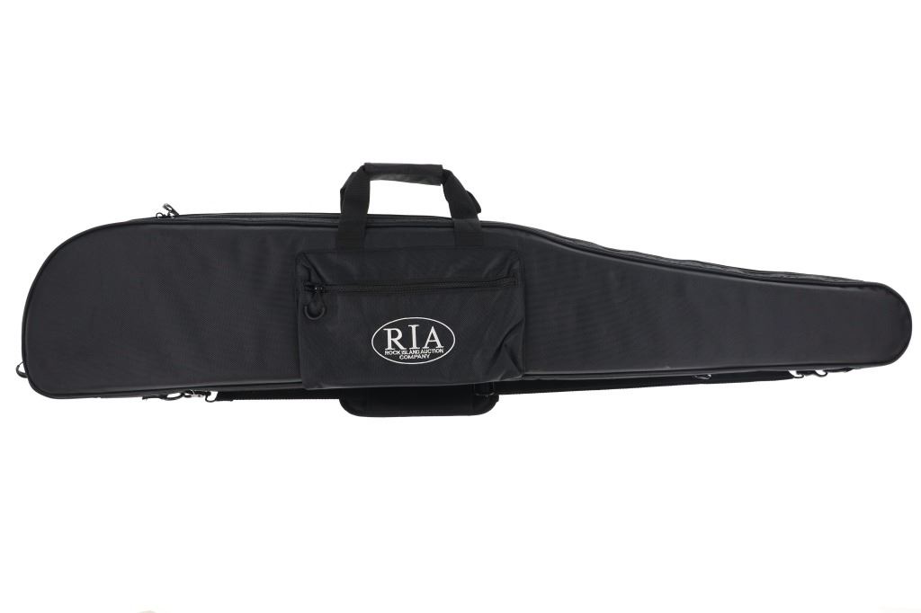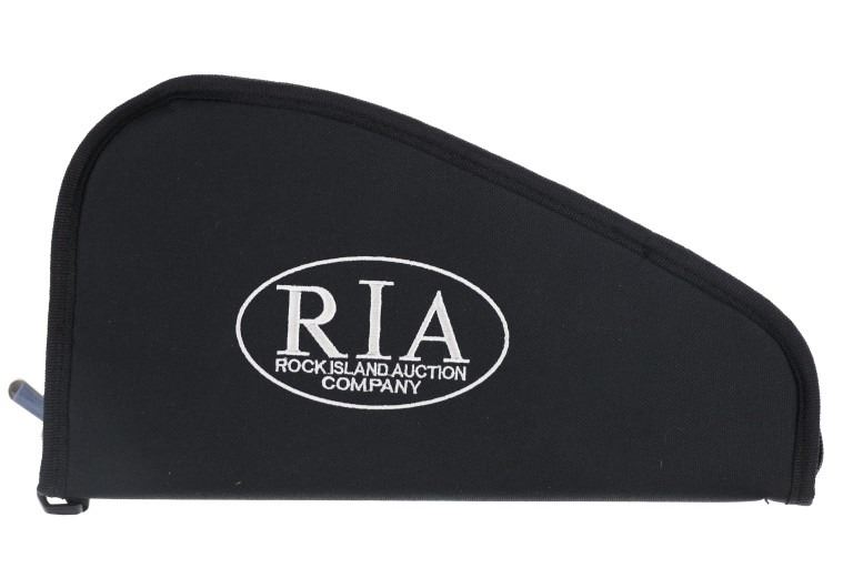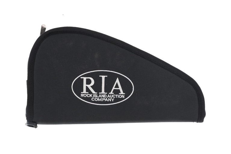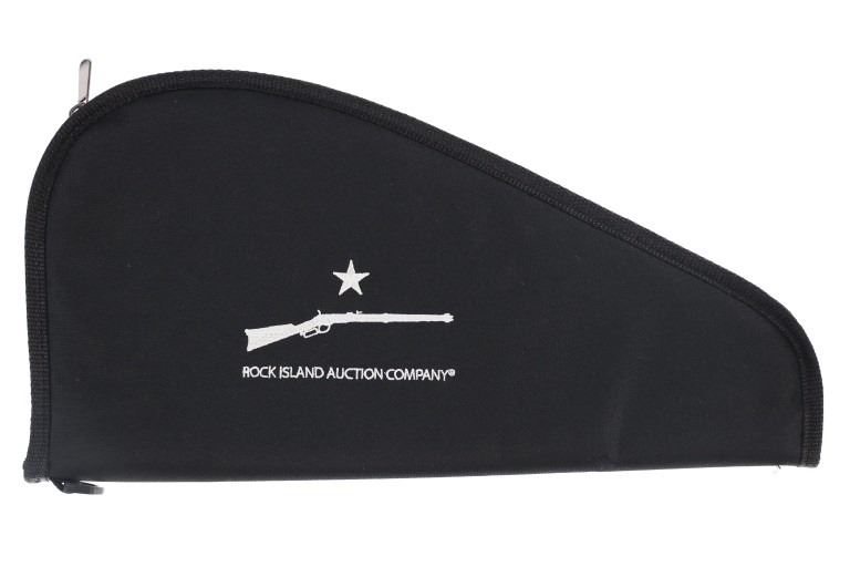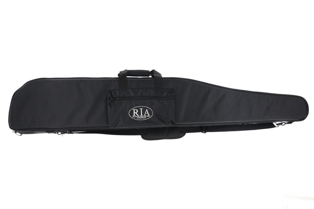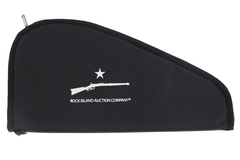 Lot consisting of six (6) new rifle cases with shoulder straps(three extra long and three medium), and six (6) new zipper handgun cases (three large and three medium). The cases are made of black nylon with white stitched Rock Island Logos. The rifle cases measure 54" and 48" long with the pistol cases measuring 17" and 13" long respectively. The collection weighs 17lbs 6oz overall