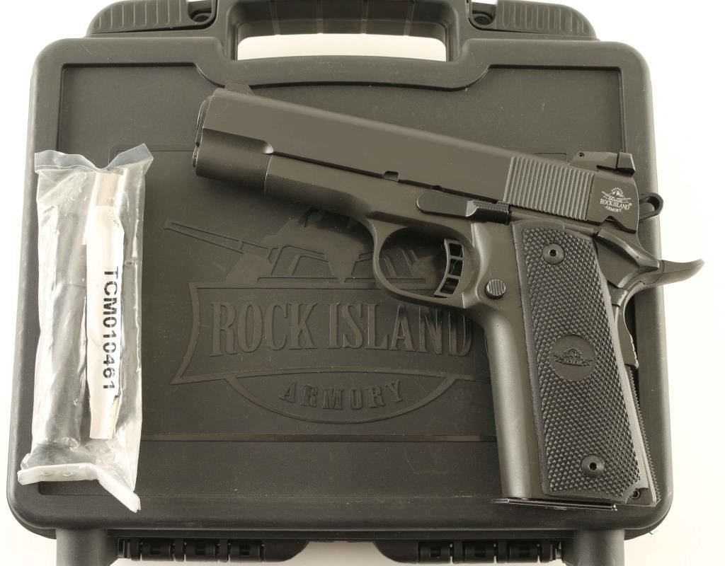 Double stack 1911 platform single action semi-automatic pistol chambered in .22 Tuason Craig Micromagnum with a 9x19mm conversion barrel. Manufactured in the Philippines by Arms Corporation circa 2013 and imported by Armscor Precision International of Pahrump, Nevada. Features a parkerized finish, 4.25" barrel, dovetailed blade front sight, LPA adjustable rear sight with two white dots, skeletonized trigger with adjustable overtravel stop, skeletonized hammer, thumb safety on the left side of the frame, upswept grip safety, push button magazine release, 17 round magazine, checkered flat black polymer mainspring housing, steel frame with double stack magazine well and two-piece checkered black polymer grips. Includes the original factory hard case with documents, spent cases, tool, spare extractor, 9mm barrel and recoil spring. Pistol exhibits approximately 99%+ of it's original finish showing little to no visible wear. Action is smooth, the bore is pristine and the polymer grips are fine. Condition is like NRA Perfect in box. ***Modern Firearm***
