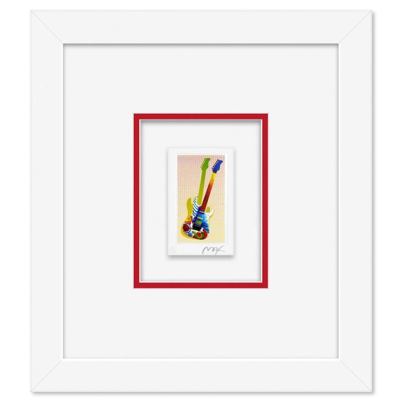 "Rock-N-Roll Guitar I" is a limited edition lithograph on paper by Peter Max numbered and hand signed by the artist. This piece comes framed. Includes Certificate of Authenticity from Peter Max Studios. Measures approx. 13" x 11.5" (frame) 4" x 2.5" (image).