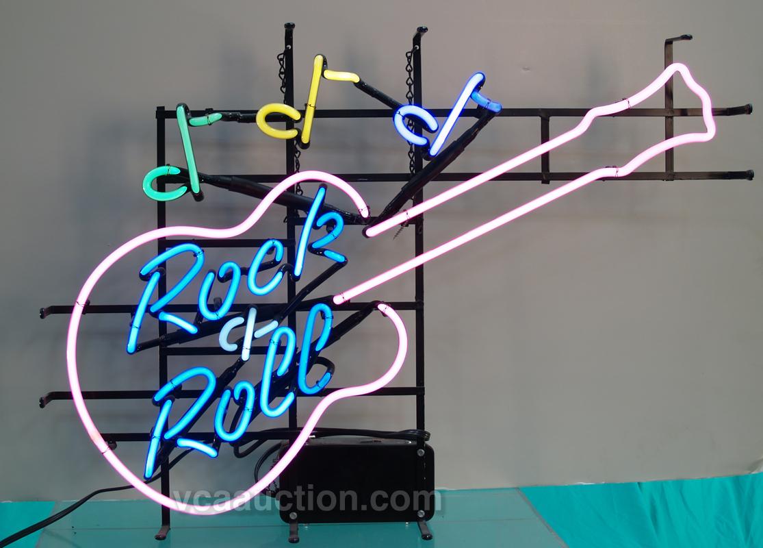 Rock & Roll Neon Sign w/ Guitar & Music Notes, Works