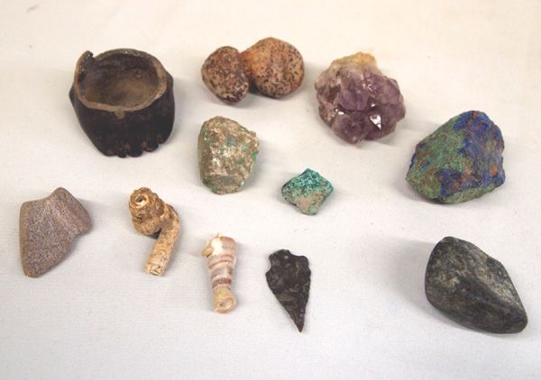 Rock Specimen & Surface Finds from Playas NM Ranch, Casas Grande Pottery Foot, Turquoise, fossils, amethyst, black stone arrowhead, misc, fabulous collection, largest measures approx. 2'' x 1.5'', Acquired in accordance with all State and Federal Regulations